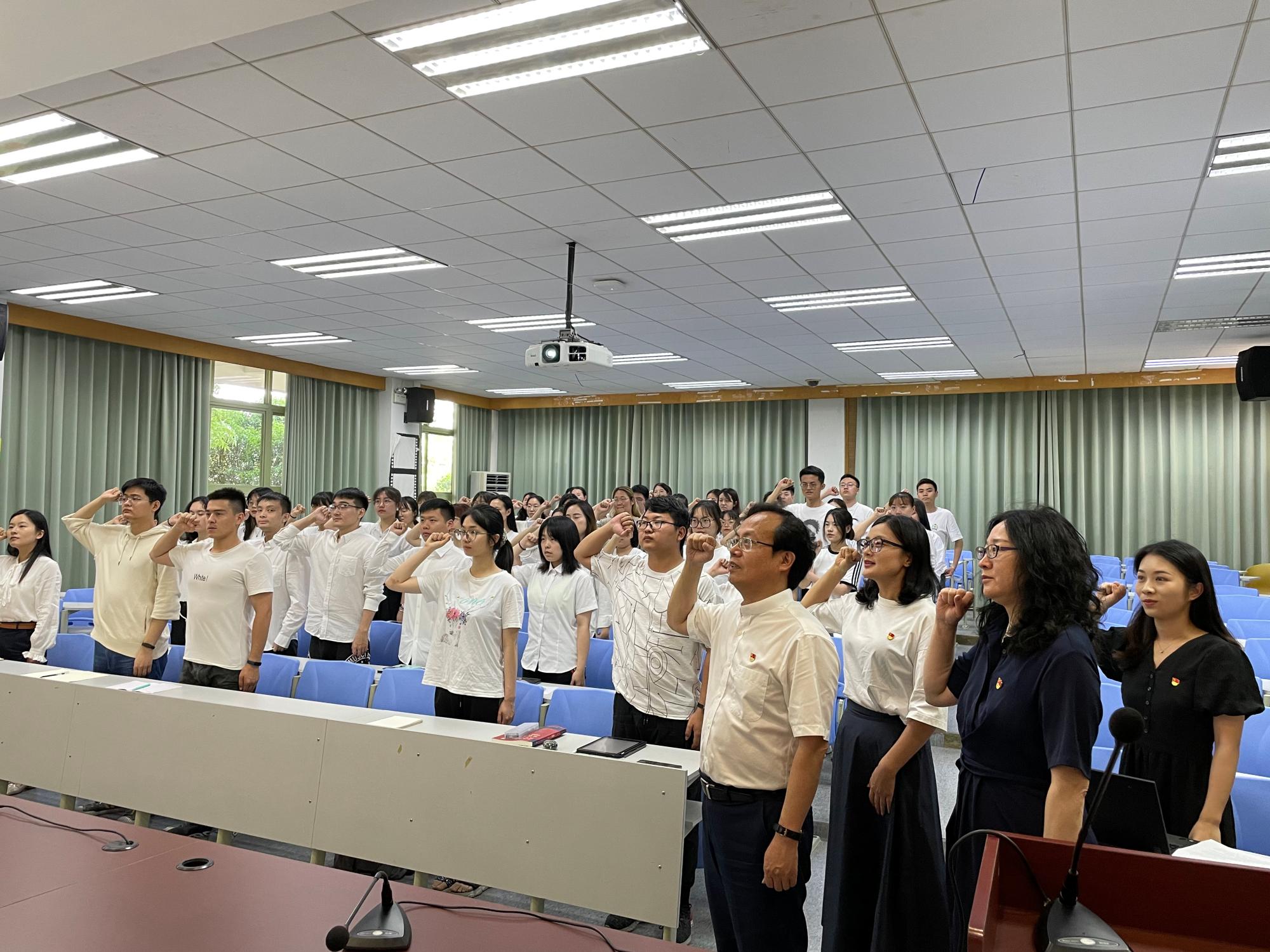为丰富党史学习教育内涵,激励新发展党员以优异成绩迎接建党100周年,6月8日下午,雷速体育官网 党委在雷速体育官网 楼101报告厅举行2021年预备党员宣誓仪式。校党委副书记黄建新出席并领誓,雷速体育官网 党委副书记王文婷、2021年新发展党员参加,仪式由雷速直播 党委书记朱丹主持。仪式在庄严的国歌声中拉开帷幕,朱丹宣读了53名新党员名单,黄建新副书记领誓,并为新发展党员佩戴党徽、发放党章。“我志愿加入中国共产党,拥护党的纲领,遵守党的章程,...