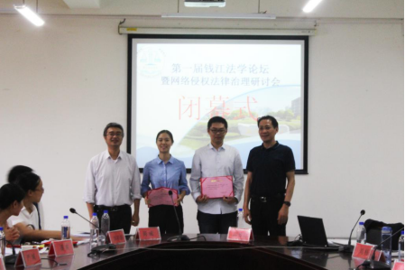“钱江法学论坛”于2017年1月拉开帷幕,论坛以“网络侵权法律治理”为主题吸引了在杭各高研究生,论文集收录了浙江大学、杭州师范大学、浙江财经大学等在杭高校20多篇论文,以跨专业、多视角、跨区域等方面具体阐释“网络侵权法律治理”的理论分析和实践研究。经校外专家盲审,最终入围决赛答辩论文15篇。在现场答辩环节,各高校入围选手进行了精彩纷呈地论文PPT展示和汇报。经过激烈的角逐和现场评委专家的评定,浙江财经大学民商法专业的林雅晨、经济法学专业的刘栋荣获一等奖,杭州师范大学俞倩等四位同学荣获二等奖,浙江大学金超等六位同学荣获三等奖。