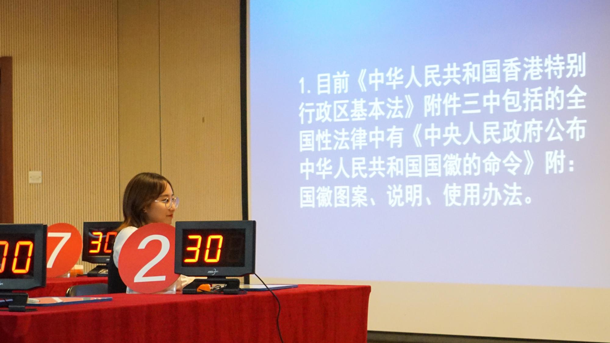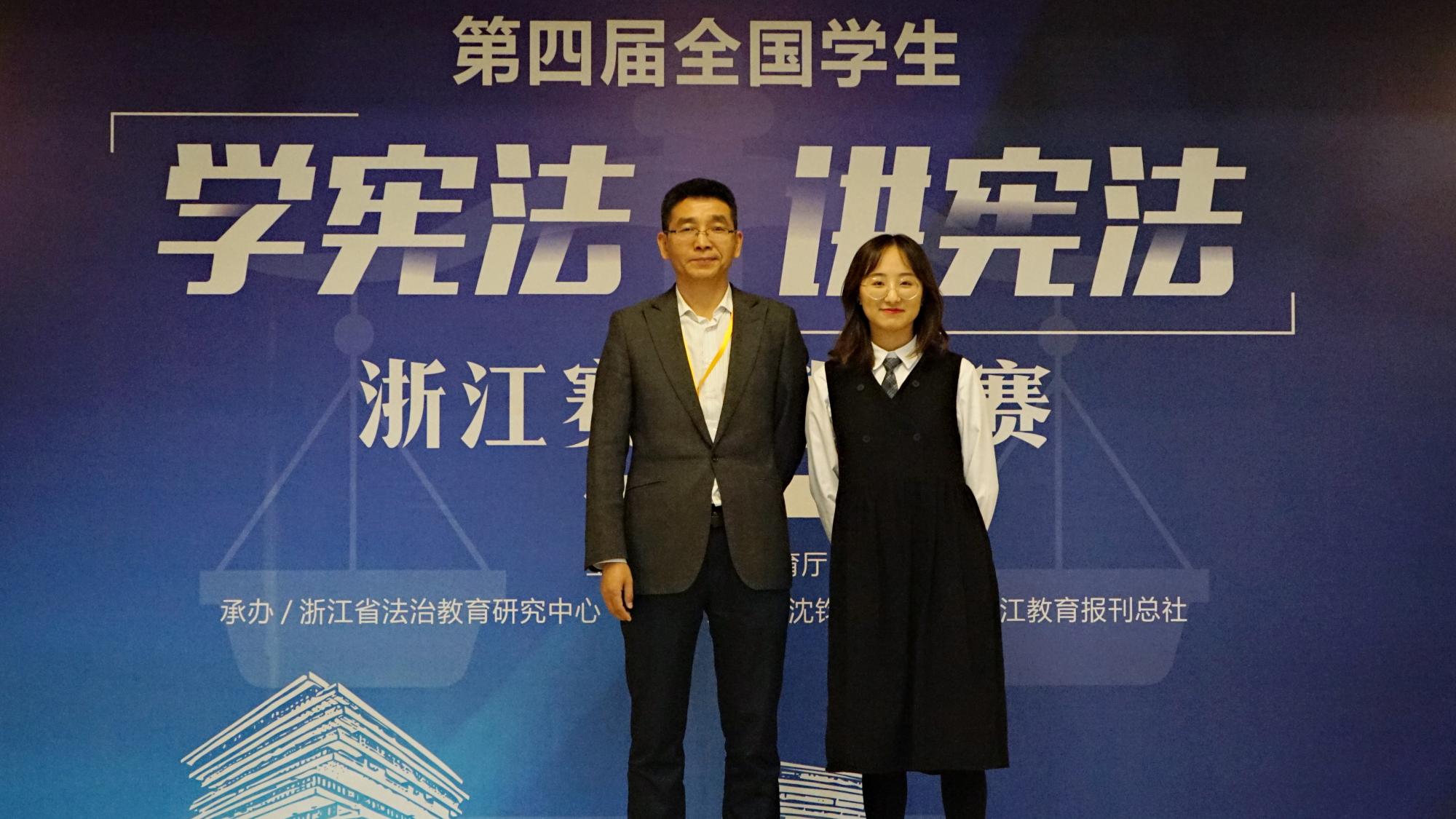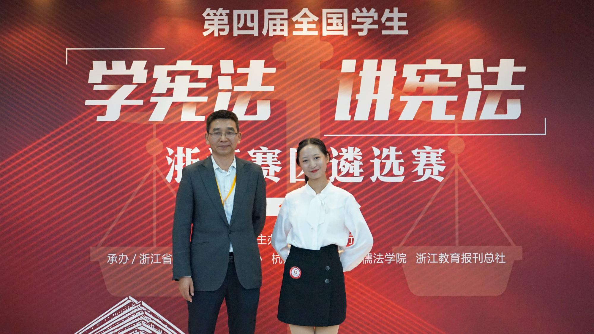 本科生代表浙江财经大学参加省赛。比赛中,刘玲妍同学积极应对,一度连续三次抢得答题机会并回答正确得分,精彩表现获得现场阵阵掌声,最终获得知识竞赛一等奖。林汶璇同学紧紧围绕宪法的主题,生动地讲述了《中华人民共和国宪法》的历史渊源和近代发展,探索了《中华人民共和国宪法》联接浙江发展的有效途径。饱满的感情、流利的表达、较强的现场感染力,让林汶璇同学在所有选手中脱颖而出,以第四名的优异成绩斩获一等奖。