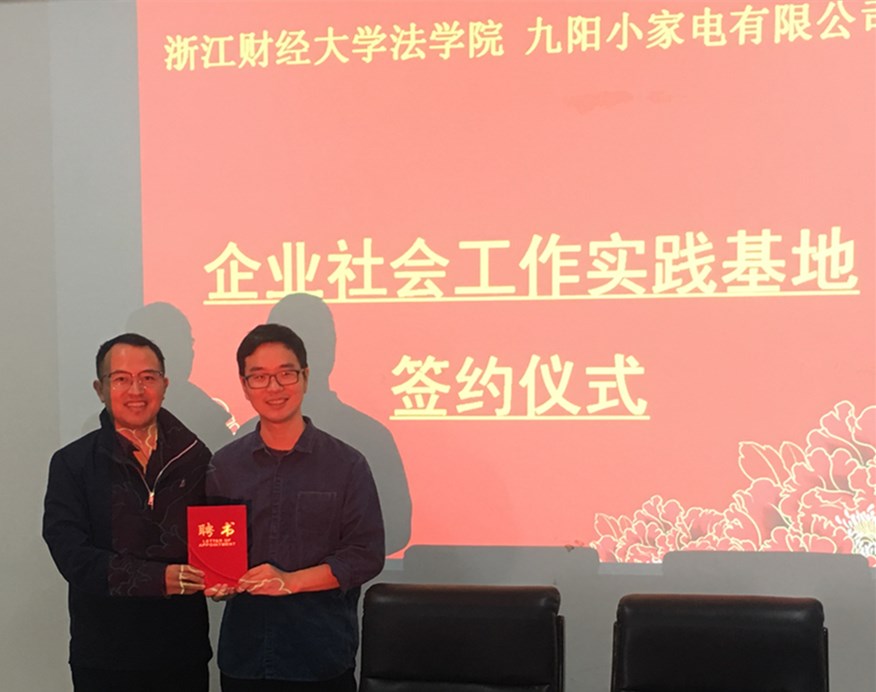 与杭州九阳小家电有限公司企业社会工作实践基地》协议,此协议致力于企业社会工作实践课程、学生参与企业公益活动等方面的合作。九阳股份公益部总监、杭州九阳小家电有限公司指定出席人黄晖,雷速体育官网