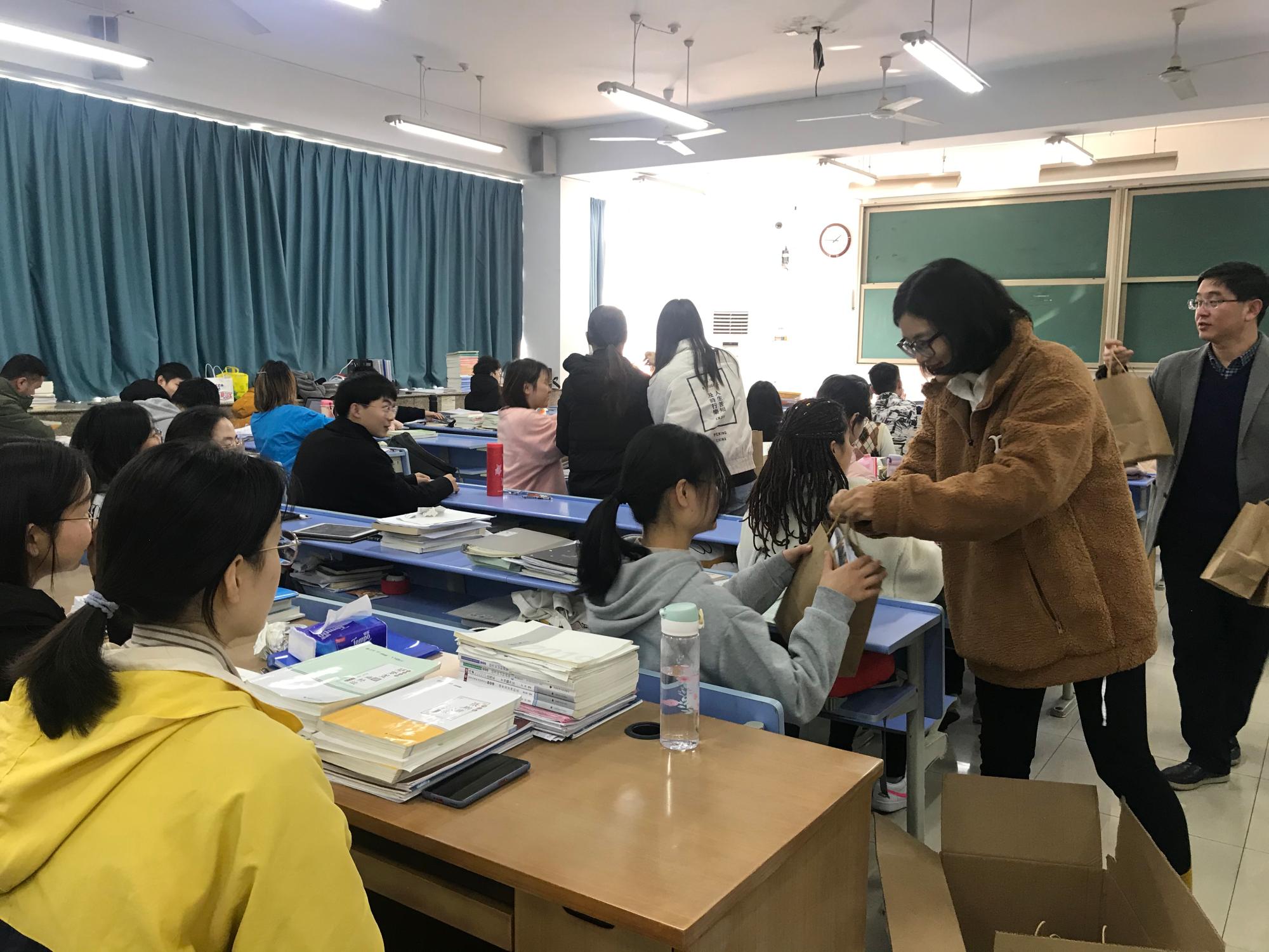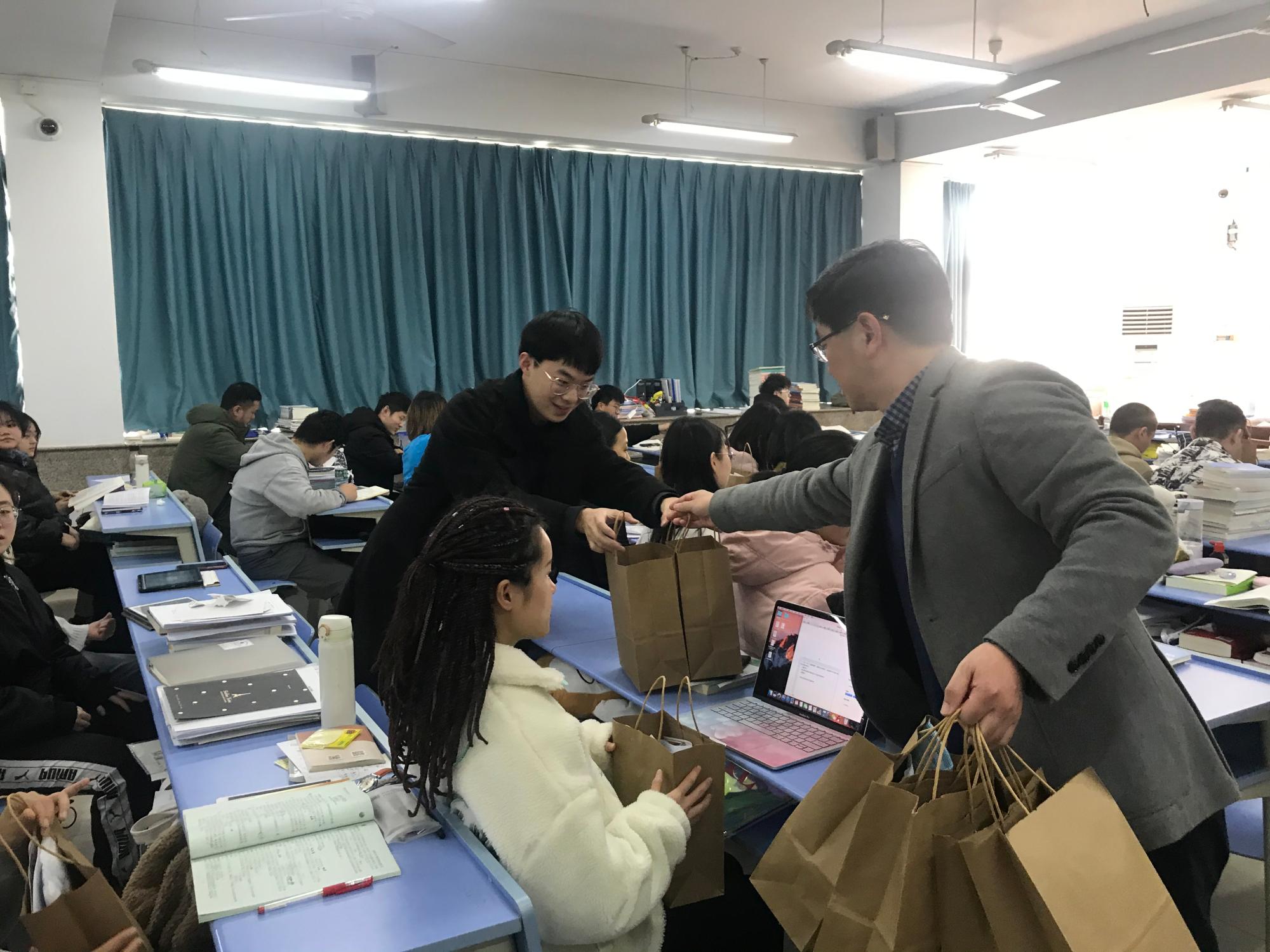 自习室内,李海龙副院长对考研学生进行了诚信考试专项教育,对即将到来的研究生考试为同学们讲解了所应注意的问题以及诚信考试的重要性,并和同学们一起交流了备考情况,并提出了很多针对性的建议。王文婷副书记向同学们表达了不松懈、不放弃、牢记初心,以最佳的状态备战迎考,努力实现考研梦想的积极状态。一是对待考试要有思想上的重视,最后的几天时间里也要积极准备;二要坚定考研信心,有取得成功的自信,保持积极向上的心态;三要找到正确的学习方法,劳逸结合,以最佳的心理状态应对考试,争取最后的胜利。最后,老师们将精心准备的考研加油包分发到每一位考研学子手中,并预祝他们取得好成绩,为考研交出一份满意的答卷。