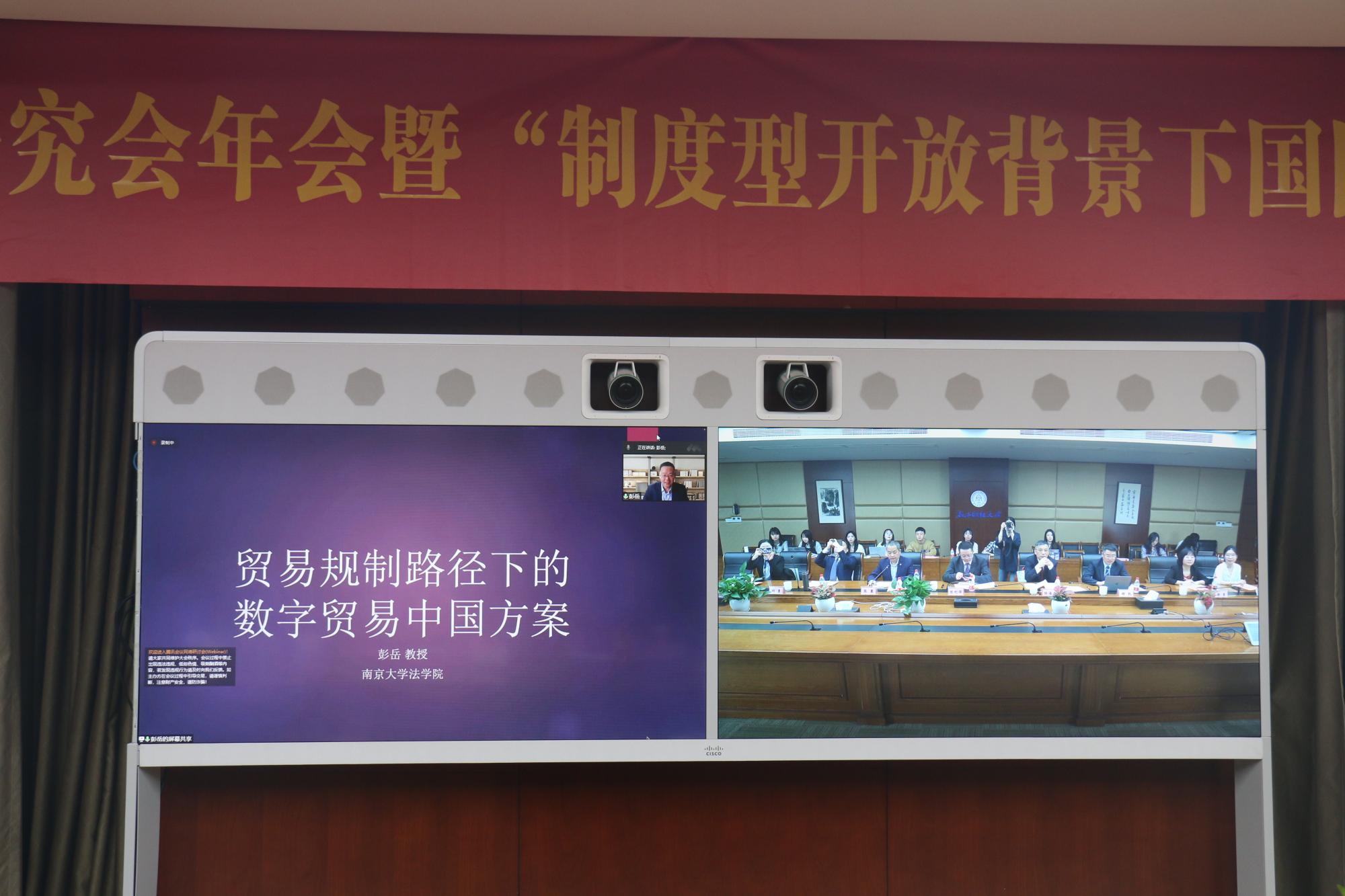副院长彭岳教授作了题为《贸易规制路径下的数字贸易中国方案》的主旨报告。他从何为数字贸易中国方案、WTO电子商务规则谈判中的中国方案、双多边贸易协定中的中国方案、CPTPP/DEPA对中国方案的影响以及从政策分析到政治决断五个部分分享了他关于构建贸易规制路径下的数字贸易中国方案的思考与看法。他指出,利用中国方案构建数字贸易国际规则的实质是将该方案作为一种政策文本,供各国权威决断者进行政治决断。为提升数字贸易中国方案在国际层面的可接受性,需要增强方案的包容性与可操作性。报告从国际经济热点问题出发,为学者们带来了深刻启发。