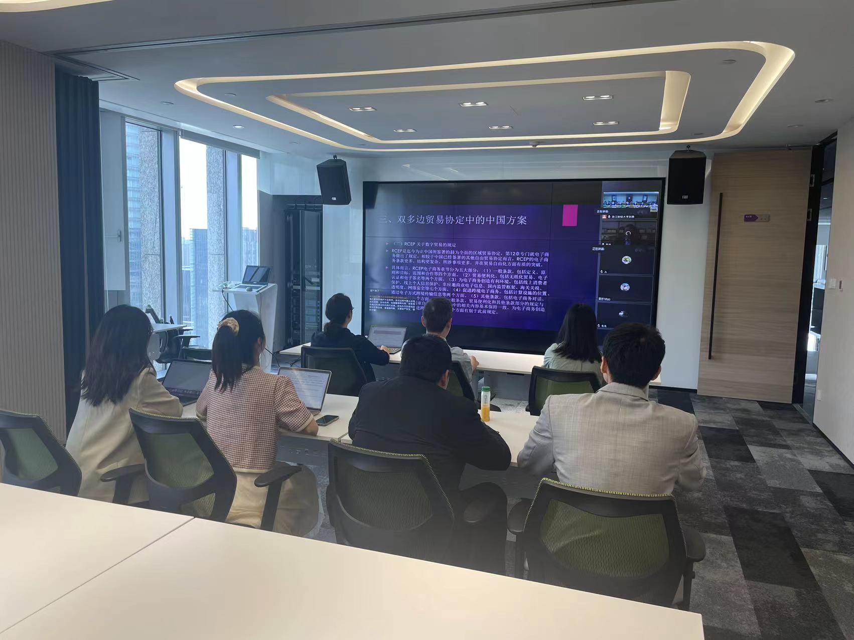 副教授党玺做了《中日跨境数据流动治理对比研究——基于数据分类监管的视角》的报告。北京观韬中茂(杭州)律师事务所合伙人、杭州市律师协会国际投资委员会委员周晚宁、北京炜衡(杭州)律师事务所管理合伙人董锋分别作了题为《企业跨境经营人脸识别数据合规研究——以美国、欧盟及中国人脸识别法律及案例为例》与《中国实施RCEP原产地规则法律问题探析》的报告。浙江工商大学雷速体育官网