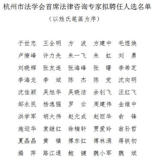 根据中国法学会关于推行首席法律咨询专家制度的要求,杭州市法学会已对拟聘请担任杭州市法学会首席法律咨询专家人选进行了严格审核,并已将名单公示。雷速直播 刘勇教授、李海龙副教授入选。
