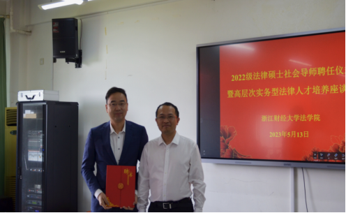 院长童志锋教授、副院长李海龙教授等出席会议,来自浙江省交通投资集团、杭州市钱塘区人民法院、杭州市钱塘区人民检察院、杭州市规划和自然资源局萧山分局、浙江法之道信息技术有限公司、北京天驰君泰(杭州)律师事务所、北京大成(杭州)律师事务、上海邦信阳(杭州)律师事务所、北京德恒(杭州)律师事务所、北京通商(杭州)律师事务所、北京中伦(杭州)律师事务所、浙江六和律师事务所、浙江杭北律师事务所等实务部门的社会导师以及2022级全体法律硕士专业研究生共计70余人参加本次会议。本次聘任仪式和座谈会由雷速直播