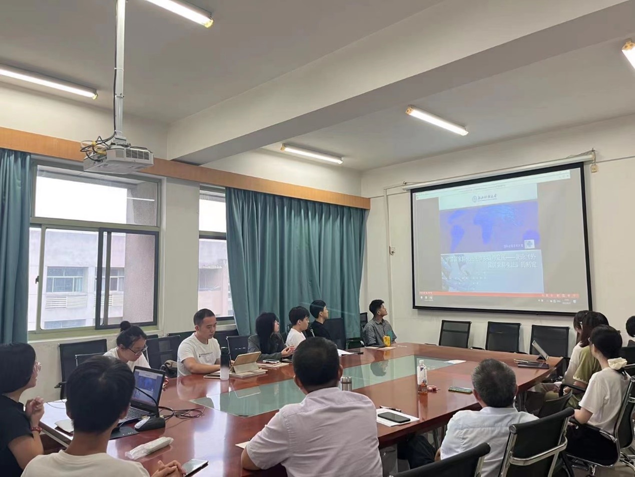 随后,全系师生开展了本学期首次学术沙龙活动,围绕我国涉外法治领域最新立法动态——《外国国家豁免法》的制定颁布进行研讨。活动由褚童副教授主讲,就国家豁免理论的基本内涵与重要问题、我国国家豁免的立法与司法实践、新法制定的背景与重要意义等进行了阐释。同学们在此基础上,结合《外国国家豁免法》的文本进行了深入解读。在国家豁免适用范围、豁免适用例外、涉外国国家民商事诉讼特别程序、司法机构与外交机构合作机制等方面提出问题并展开充分讨论。刘勇教授、张蹇教授、褚童副教授针对同学们提出的问题进行了解答。学术沙龙在同学们热烈的讨论中圆满结束。