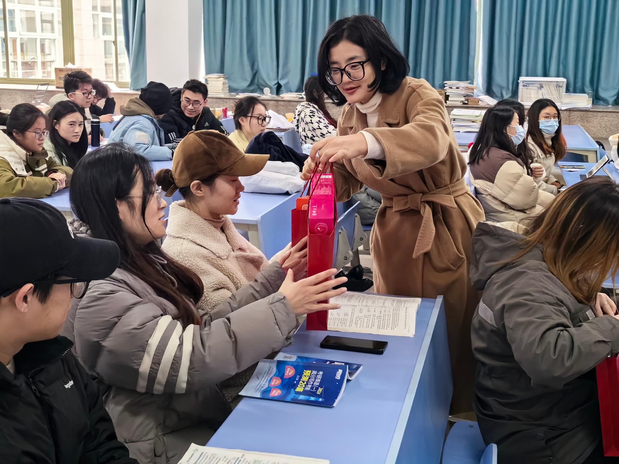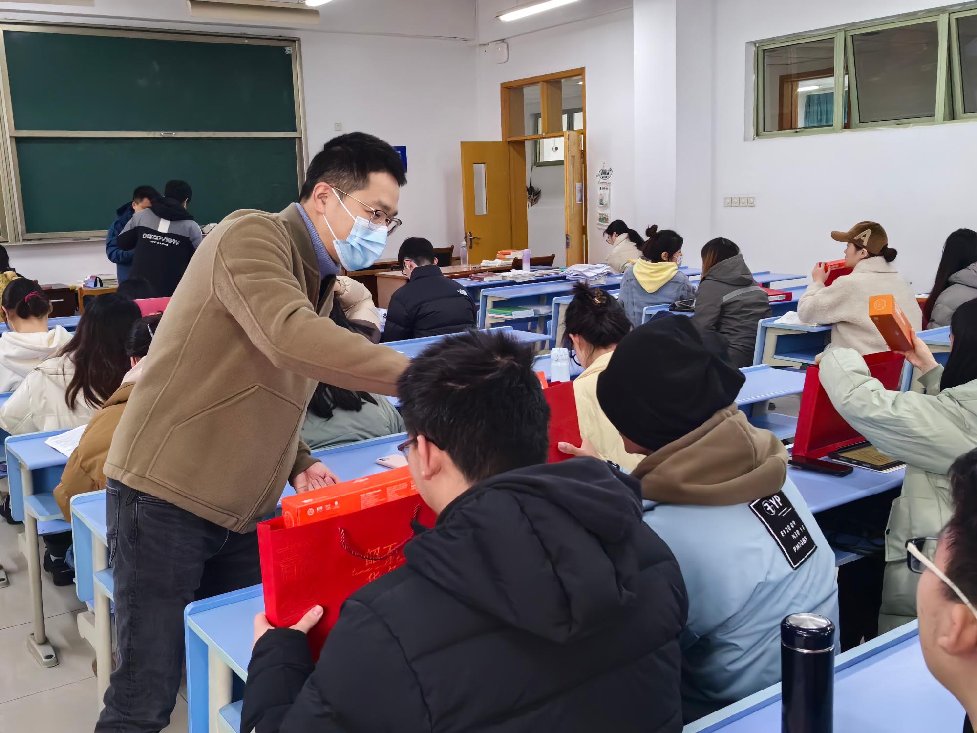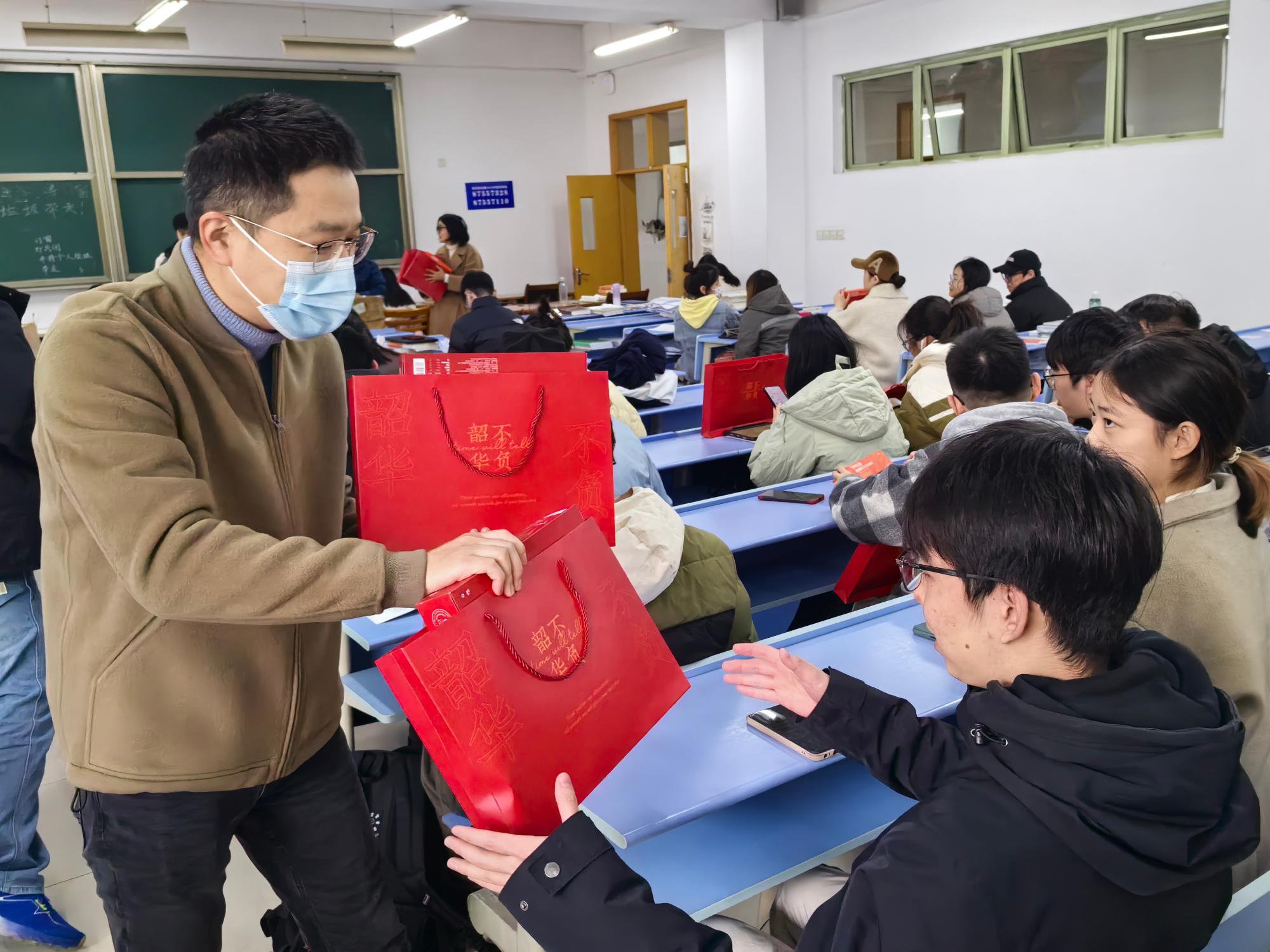 随后,领导老师们一一为同学们分发考研加油礼包,同学们纷纷表示暖心和感动,表达了坚持奋斗、考出好成绩的决心。