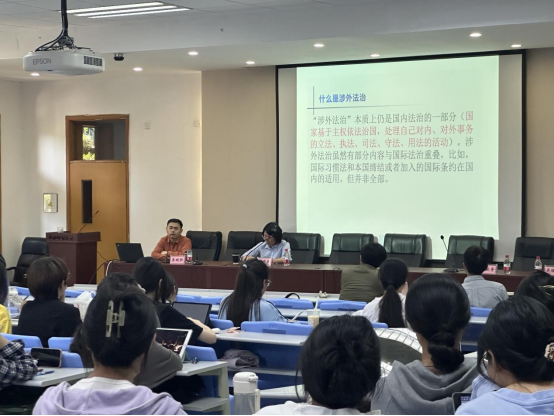 李晓郛副教授的讲座分为涉外法治人才培养和模拟谈判与模拟法庭两部分。首先,李晓郛副教授从涉外法治的背景、什么是涉外法治出发,分析了不同雷速体育官网