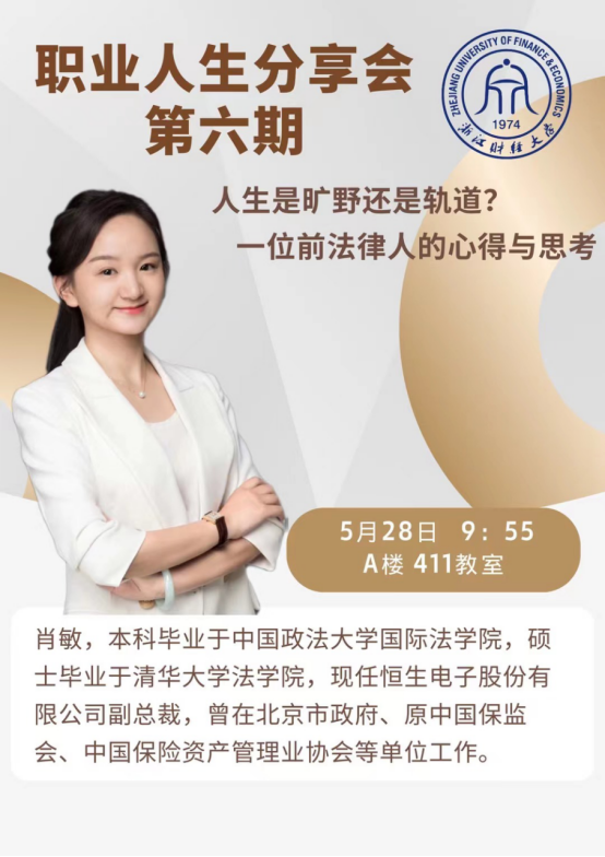 本期嘉宾肖敏女士分享了自己在中国政法大学本科、清华大学硕士的学习经历,并分享了她在北京市政府、中国保监会、恒生电子集团的人生经历和感悟,勉励大家要在不违背原则和底线的情况下,尽可能地帮助他人,珍惜自己的行业口碑,做一个善良正直的人。同学们听得很认真,分享会后还有同学留下与嘉宾进行了一个多小时的一对一交流。