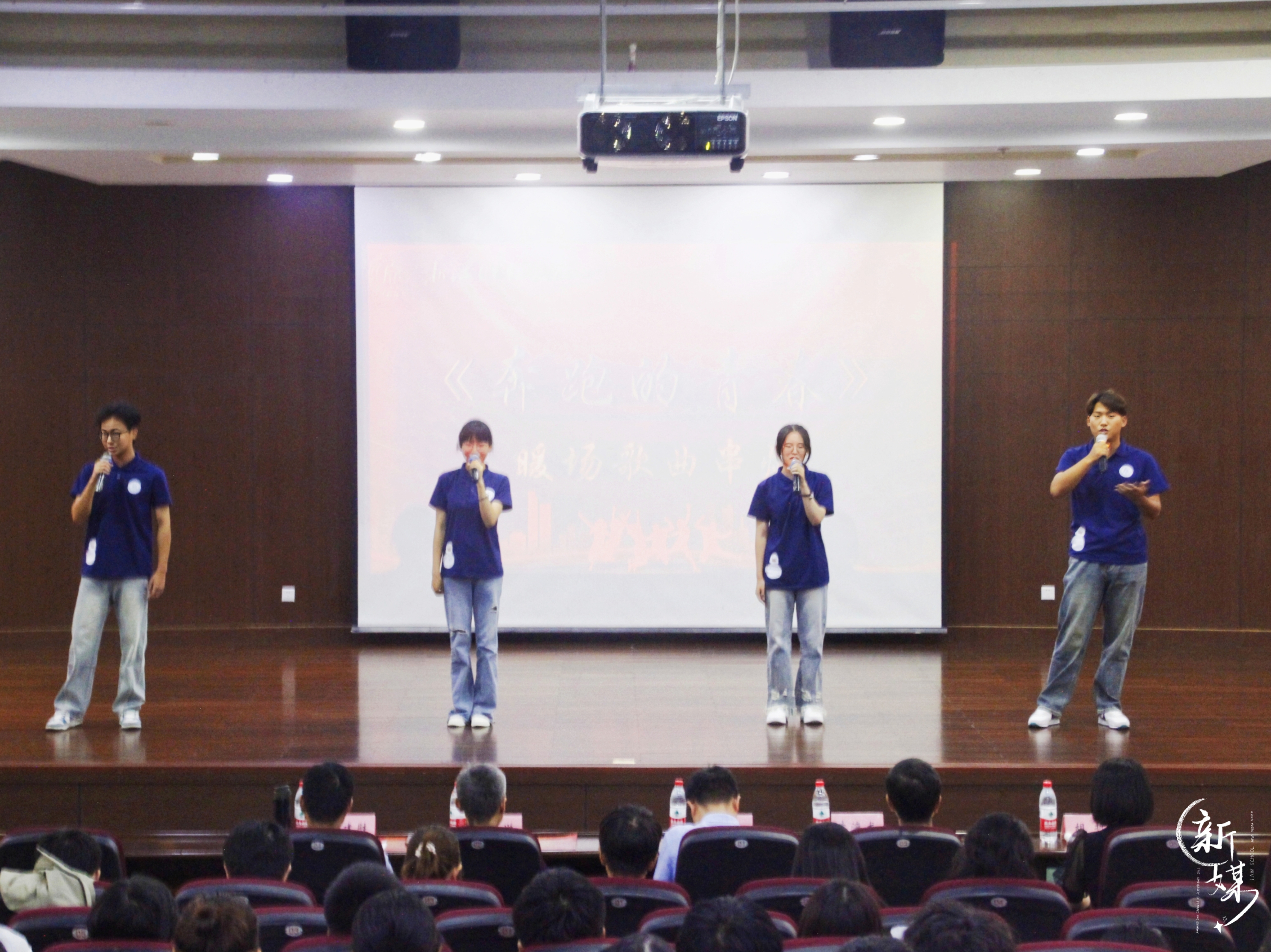 艺术团演唱《奔跑吧青春》串烧歌曲为新生送上开学祝福。
