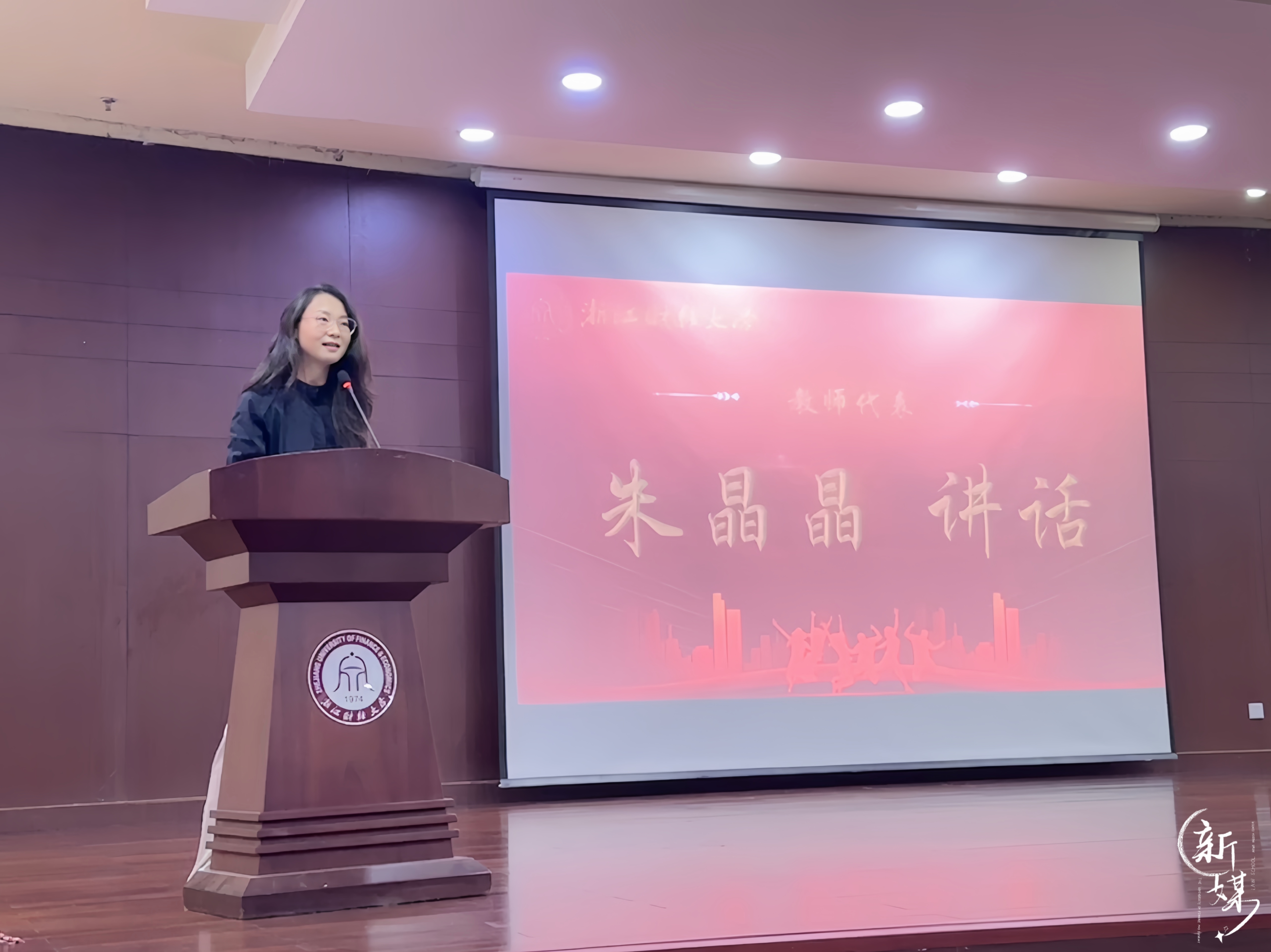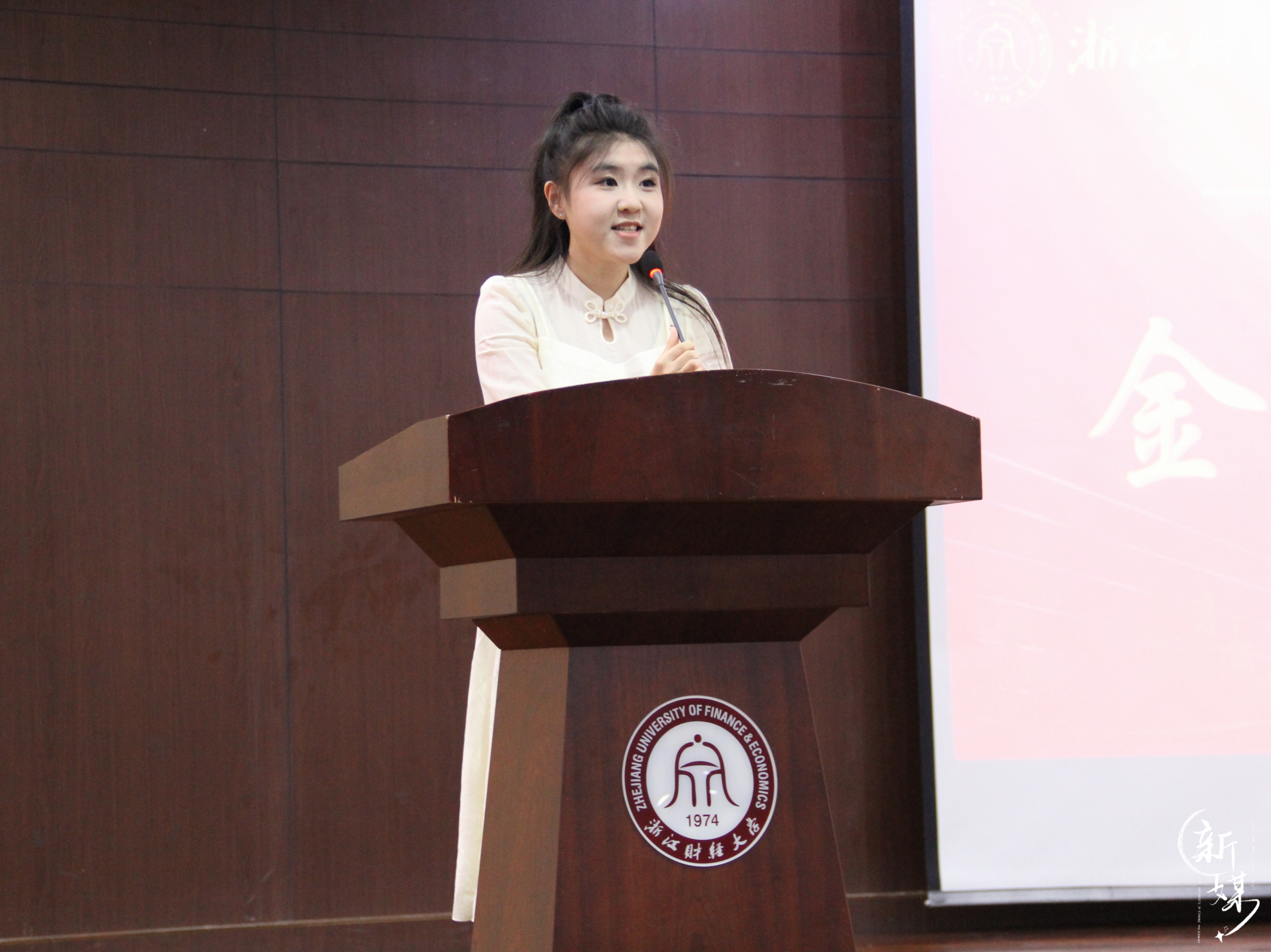 党委副书记胡哲为新生上学风、校纪第一课。她从“学”在浙财、“拼”在浙财、“行”在浙财三个方面,要求同学们在学习上刻苦勤勉,在职业规划上明确方向,在言行举止上遵守校纪校规,争做新时代“浙财金生”!