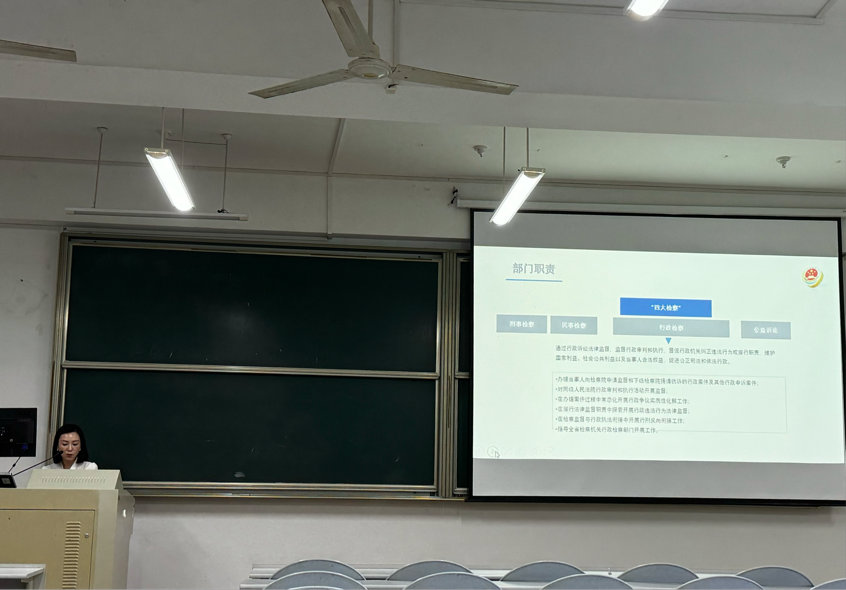 《检察理论与实务》第五讲由浙江省人民检察院第七检察部吴行检察官主讲,主题是行政检察及其相关问题。吴行检察官向研究生介绍了行政检察的主要业务分为行政生效裁判结果监督、行政审判活动监督、行政执行活动监督、行政争议实质性化解、行政违法行为监督以及行政反向衔接工作这几个部分。之后吴行检察官对每一部分展开了具体地阐述,结合了相关的案例详尽说明检察机关是如何进行行政监督工作的。这节课帮助研究生更好地了解了作为四大检察之一的“行政检察”是如何运作并发挥作用的。