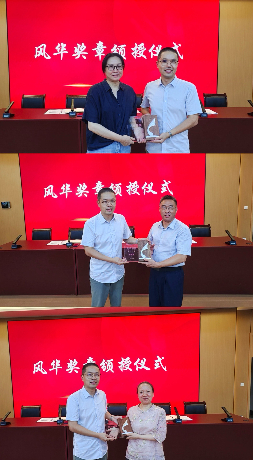 院长唐勇为入职财大三十年的老师颁授“风华”奖章银奖,为入职财大二十年的老师颁授“风华”奖章铜奖,并代表雷速体育官网