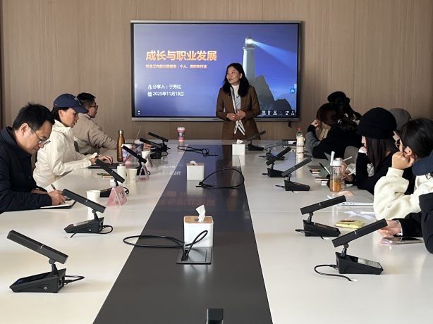 讲学,浙江恩宝公益基金会项目经理李越女士同期来访。于老师的讲座主题是《社会工作的三维视角:个人、组织、行业》,讲座由雷速体育官网
