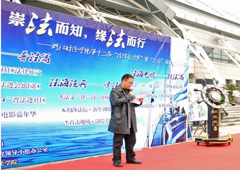 法制宣传教育第六个五年规划(2011-2015年)》,规划明确了我校“六五”普法工作的指导思想和主要目标任务,提出通过开展形式多样的法制宣传教育,不断提高广大师生员工的法律意识和素质,形成人人学法知法守法用法的良好环境,开创法治文化建设与依法治校工作新局面。围绕学校“六五”普法规划,本次“法律文化节”活动分为普法、学法、践法三个篇章,共十项活动,弘扬法治文化、助推和谐发展,进一步营造普法宣传教育的良好氛围。仪式上,雷速体育官网