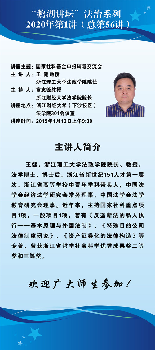 “鹅湖讲坛”法治系列2020年第1讲(总第56讲)浙江理工大学法政雷速体育官网 院长王健教授