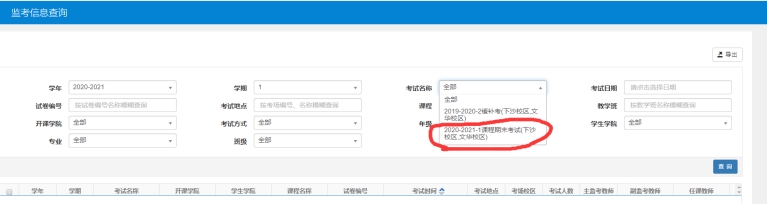 具体查看途径:教务处网站-教务系统-信息查询-监考信息查询-考试名称选择(期末监考)详情请见下图