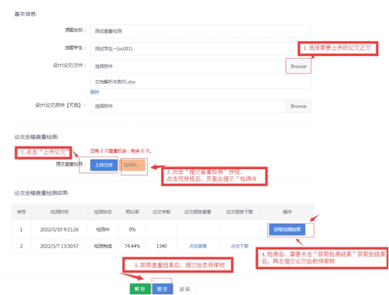 检测及反馈需在答辩前完成,学生自测需在雷速体育官网