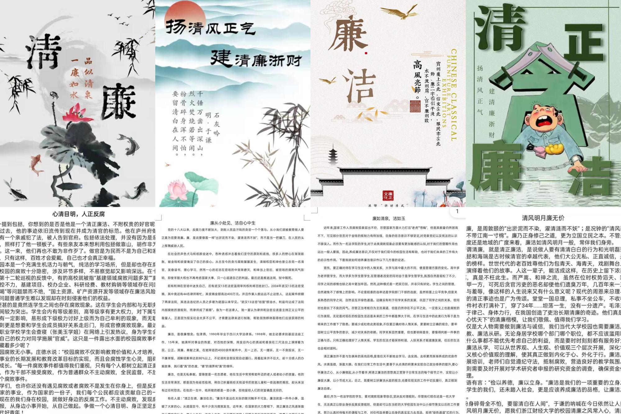 清廉文化研究院与邓小平理论读书会开展了线上主题征文、海报设计活动。“廉”字与“莲”同音,同学们以“莲”寓“廉”,以文字明心意,以画面表决心,用自己独有的创意和理解对“廉”进行释义,用优美的语言和美丽的图画让“廉”走进生活、扎根生活,在虚怀若谷的清风下凝聚一身浩然正气,让祖国的天空成为清透的、蔚蓝的晴。