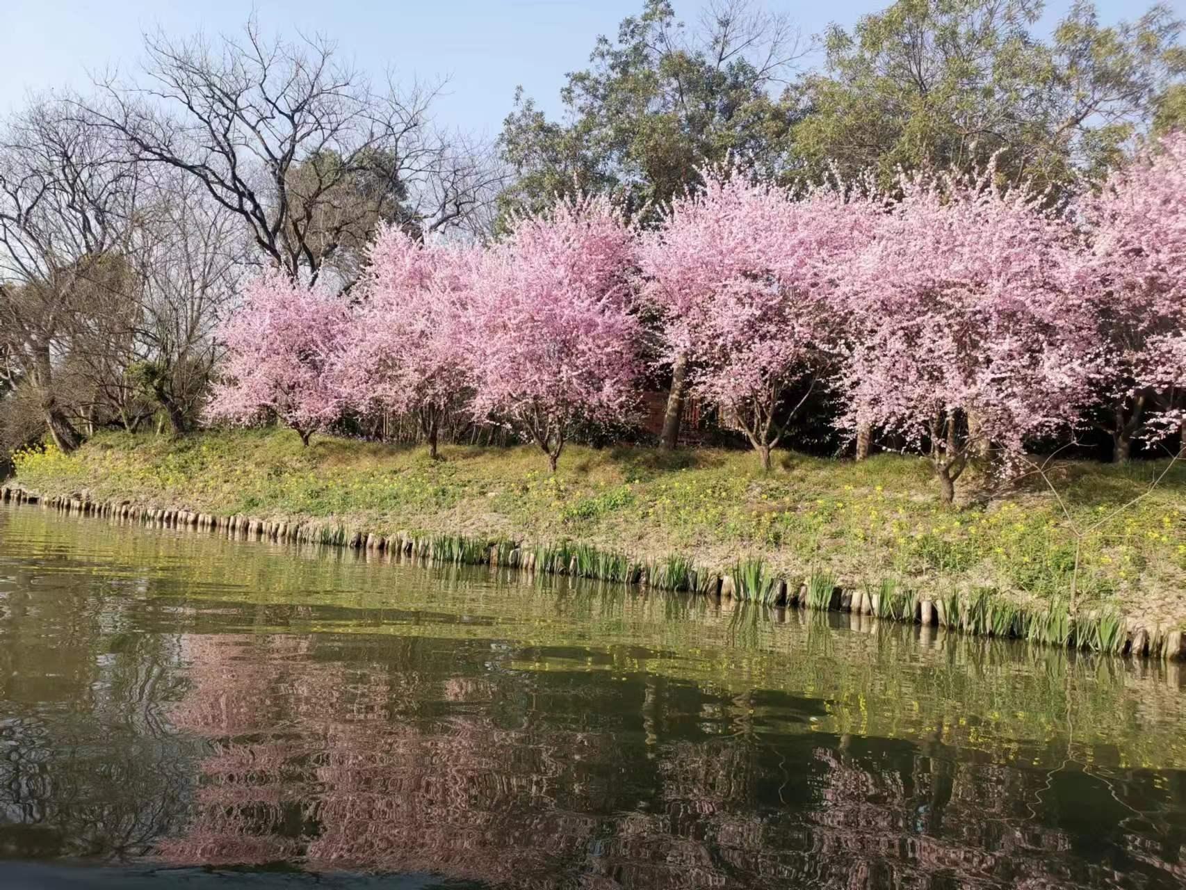 当天天气晴朗,正是户外踏青寻春的好时机。老师们以西溪湿地周家村码头为起点泛舟西溪,环湿地经过烟水渔庄、深潭口、茭芦田庄等。西溪湿地步步都是好景色,绿堤上的花草展示着最美的姿态,水中偶见鸬鹚、野鸭,美景频现。