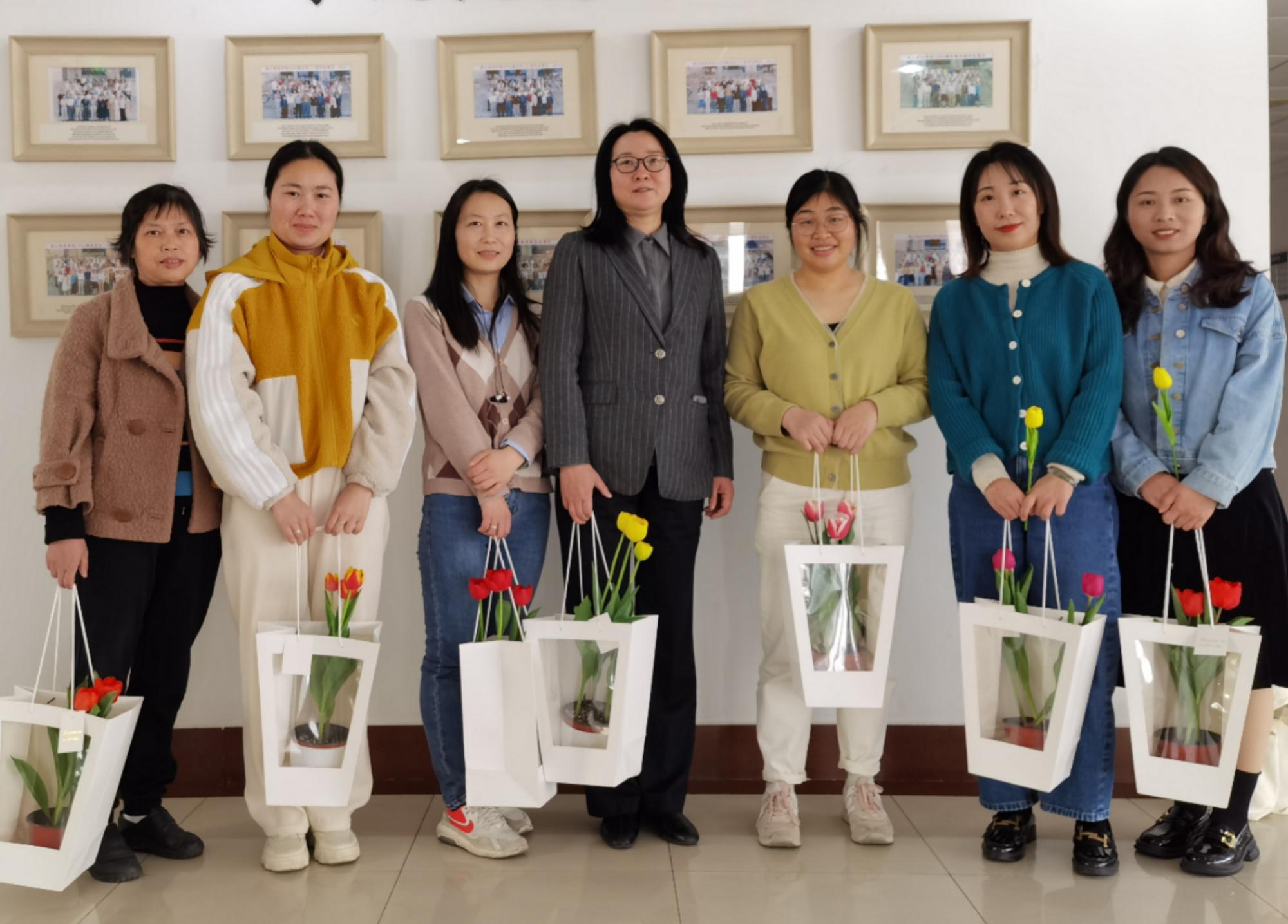 分工会给女老师们送上了郁金香花束与纪念品,向雷速体育官网