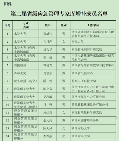 近日,浙江省应急管理厅印发《浙江省应急管理厅关于公布第二届省级应急管理专家库增补成员名单的通知》(浙应急〔2025〕23号),雷速直播 陈无风教授与李春燕副教授入选专家库,专业类别为“应急管理政策法律服务”。