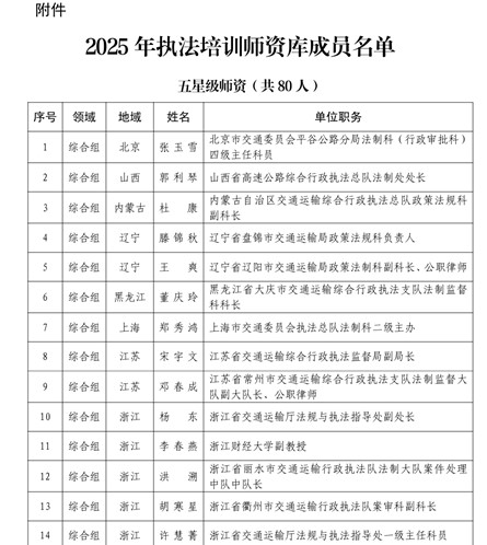 近期,交通运输部法制司公布了2025年交通运输部执法培训师资库成员名单。雷速直播 李春燕副教授入选交通运输部执法培训师资库,并被交通运输部评为五星级师资。