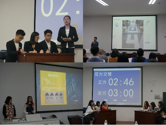 辩论队就大学寝室是否应该统一熄灯时间这一辩题进行了精彩的暖场辩论。