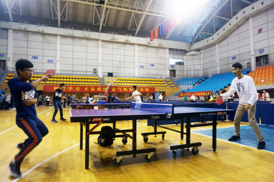 的乒乓球爱好者,吸引了许多热爱运动的观赛者。在众多学生会体育部工作人员的有序组织下,整场比赛秉持着公平、公正、公开的原则进行,场内的气氛十分的活跃,每位选手都身经百战,在掷球挥拍间尽显高超的球技。