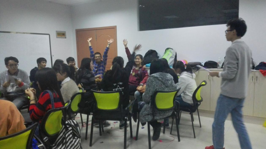 “我们要制定战略!”“联盟!”纷纷这样喊着。这个游戏每个小组既要有自己的一套策略,又要保护女生。更加促进了一个小组的归属感,也快速的达到了活跃班级氛围的目标。然后每个小组分别做了“快乐传播”的活动。