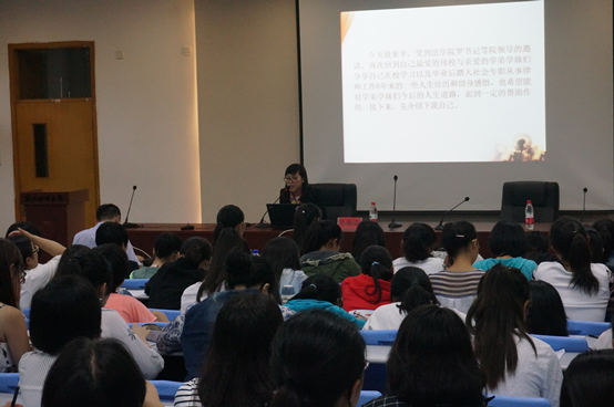 首先,吴晓洁进行了简单的自我介绍,并表达希望通过分享自身在校学习以及毕业后踏入社会专职从事律师工作6年来的一些人生经历和切身感悟,对在座的新生们今后的人生道路起到一定的帮助作用。