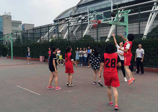 比赛开始前,赛场周围早已围满了前来观看的同学们,参加比赛的队员们也热情高涨,跃跃欲试。紧接着,激烈的篮球赛开始了。