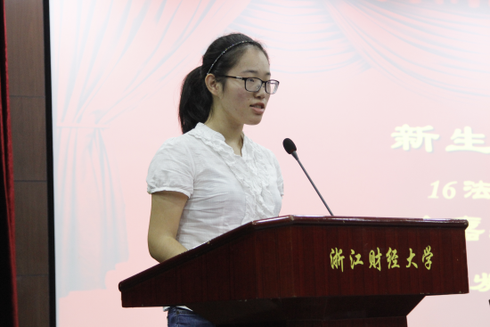 (新生代表余嘉颖同学发言)
