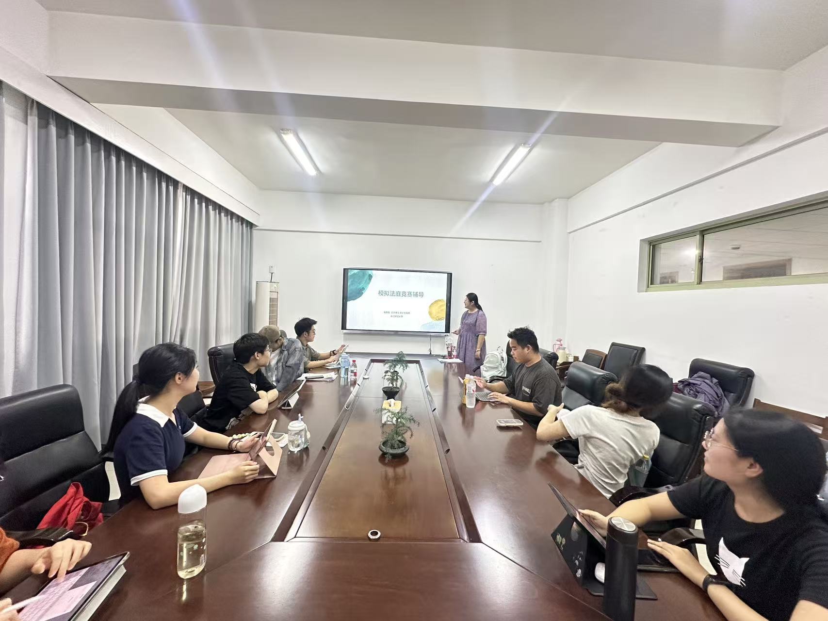 马路瑶老师针对目前存在的问题、模拟法庭比赛的规范性、等方面进行了详细分析,并提出专业建议。团队成员就准备过程中存在的疑问和难点进行提问并开展交流。其实还就根本比赛对于自身职业发展进行了规划,为职业规划大赛做好基础。