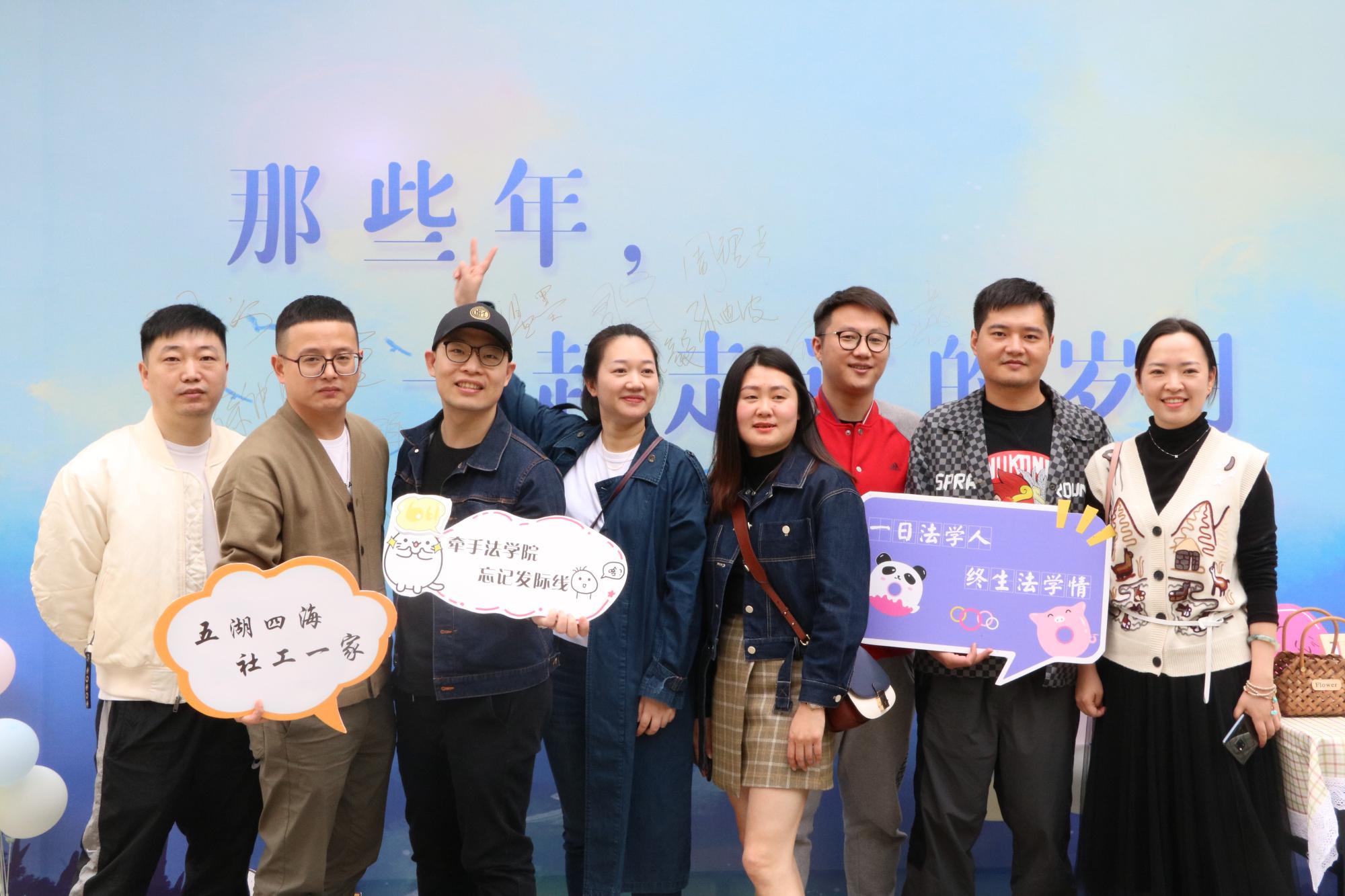 303教室、203教师举行06法学班和06社会工作班返校校友座谈会。校友们毕业十年后重逢,追忆校园生活,共话师生情谊。