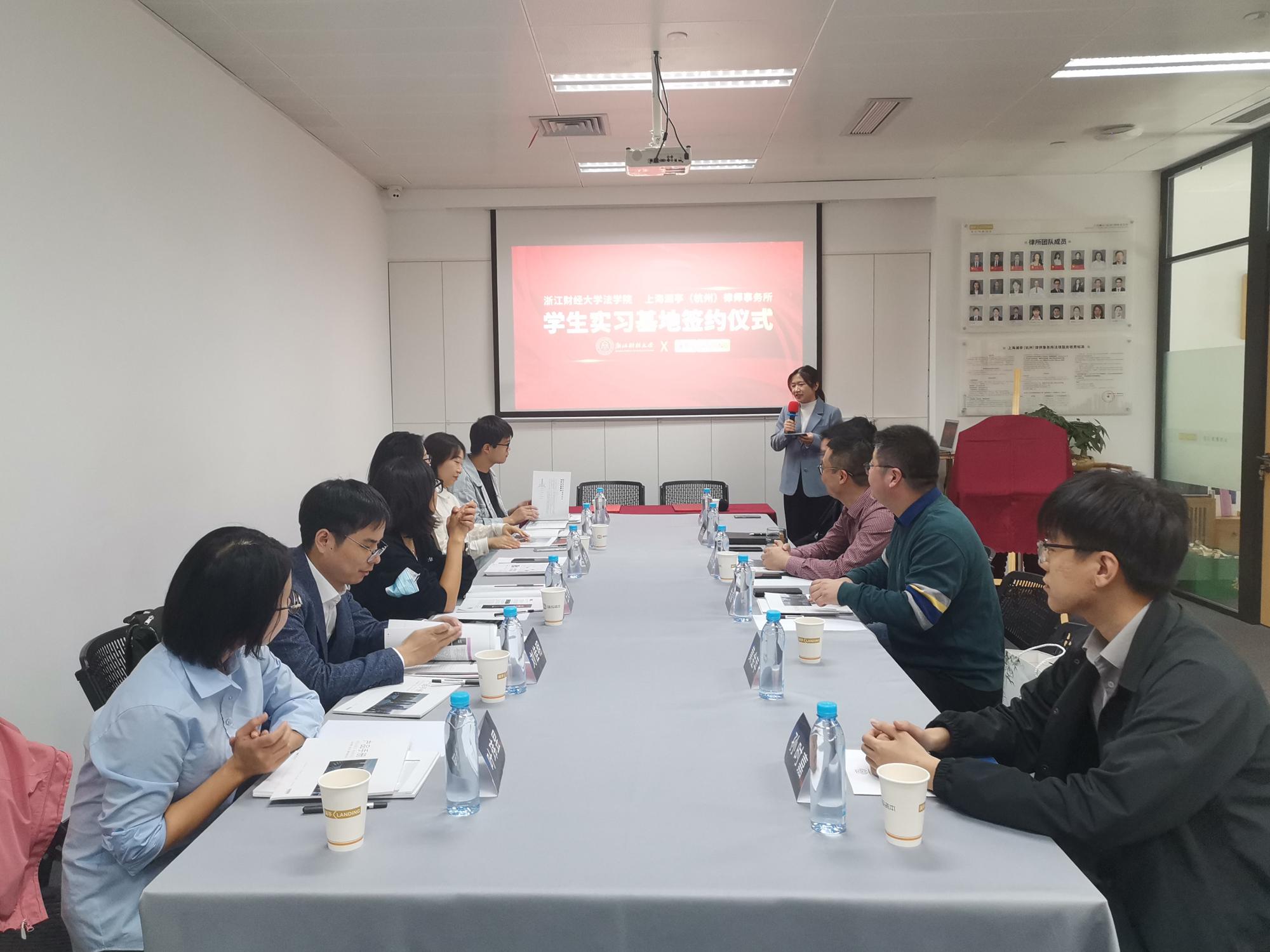 的人才培养情况。双方签署了实习基地协议,并就将在学生专业实习、毕业生就业以及实务导师、科研合作等方面合作进行深入探讨。