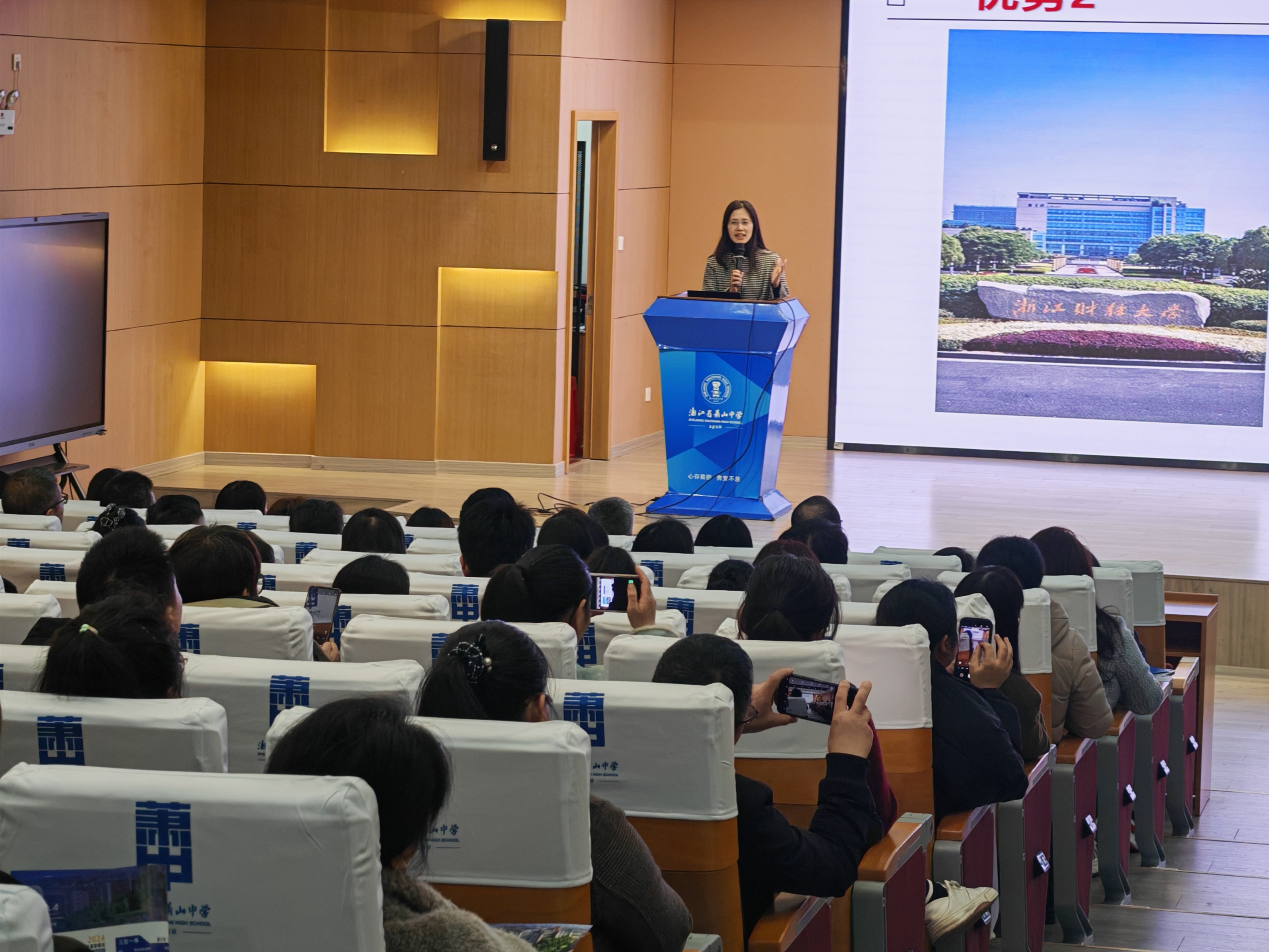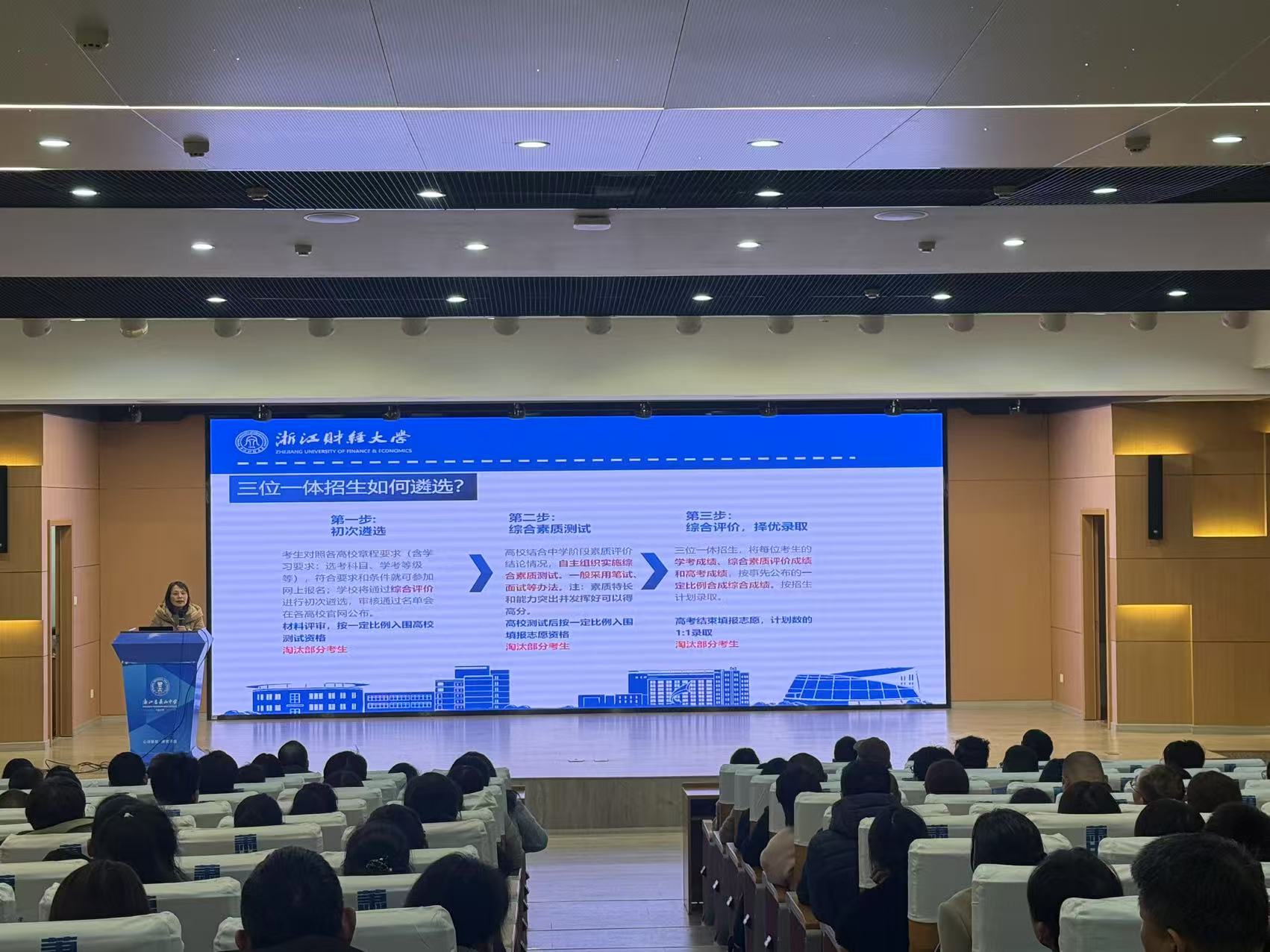 2025年3月10日,浙江财经大学招生宣讲团队走进萧山中学,面向高三家长举办招生宣讲会,旨在全面介绍浙江财经大学及其特色学院的教学资源、培养模式与招生政策,为家长和学生提供升学指导。