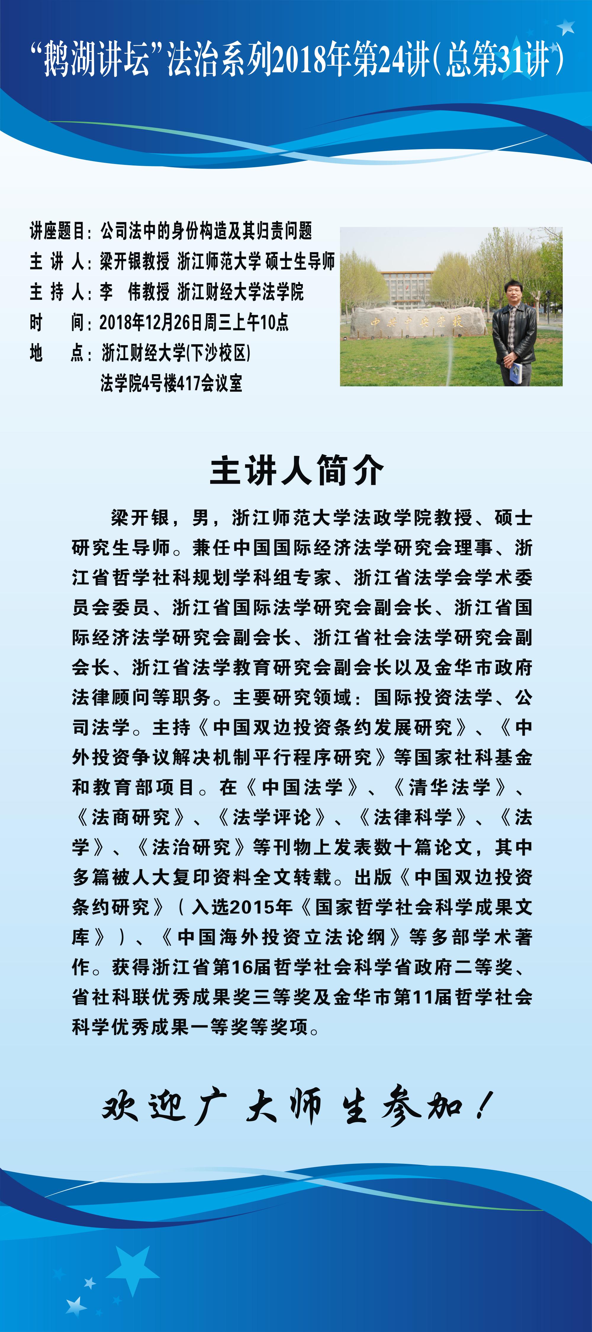 “鹅湖讲坛”法治系列2018年第24讲(总第31讲)浙江师范大学法政雷速体育官网 梁开银教授