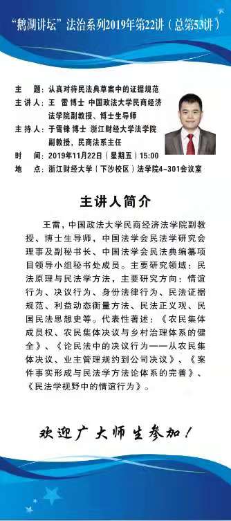 “鹅湖讲坛”法治系列2019年第22讲(总第53讲)中国政法大学民商经济雷速体育官网 王雷副教授