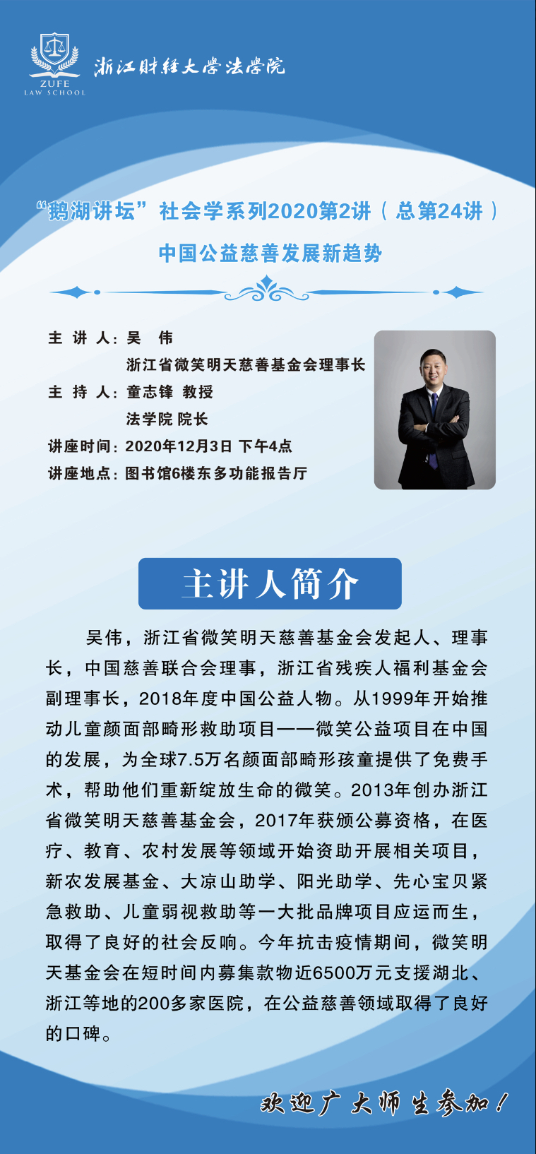 “鹅湖讲坛”社会学系列2020年第2讲(总第24讲)浙江省微笑明天慈善基金会理事长吴伟