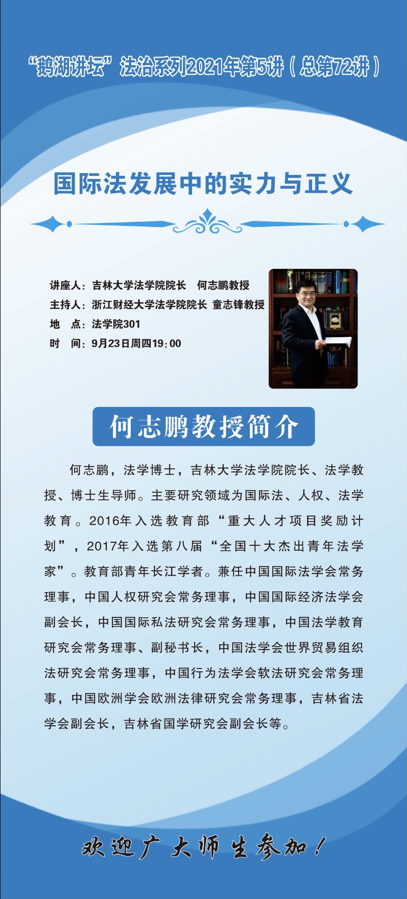 “鹅湖讲坛”法治系列2021年第5讲(总第72讲)吉林大学雷速体育官网 院长何志鹏教授