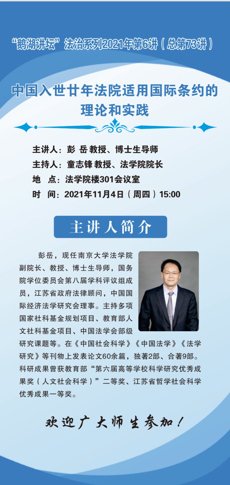 “鹅湖讲坛”法治系列2021年第6讲(总第73讲)南京大学雷速体育官网 彭岳教授