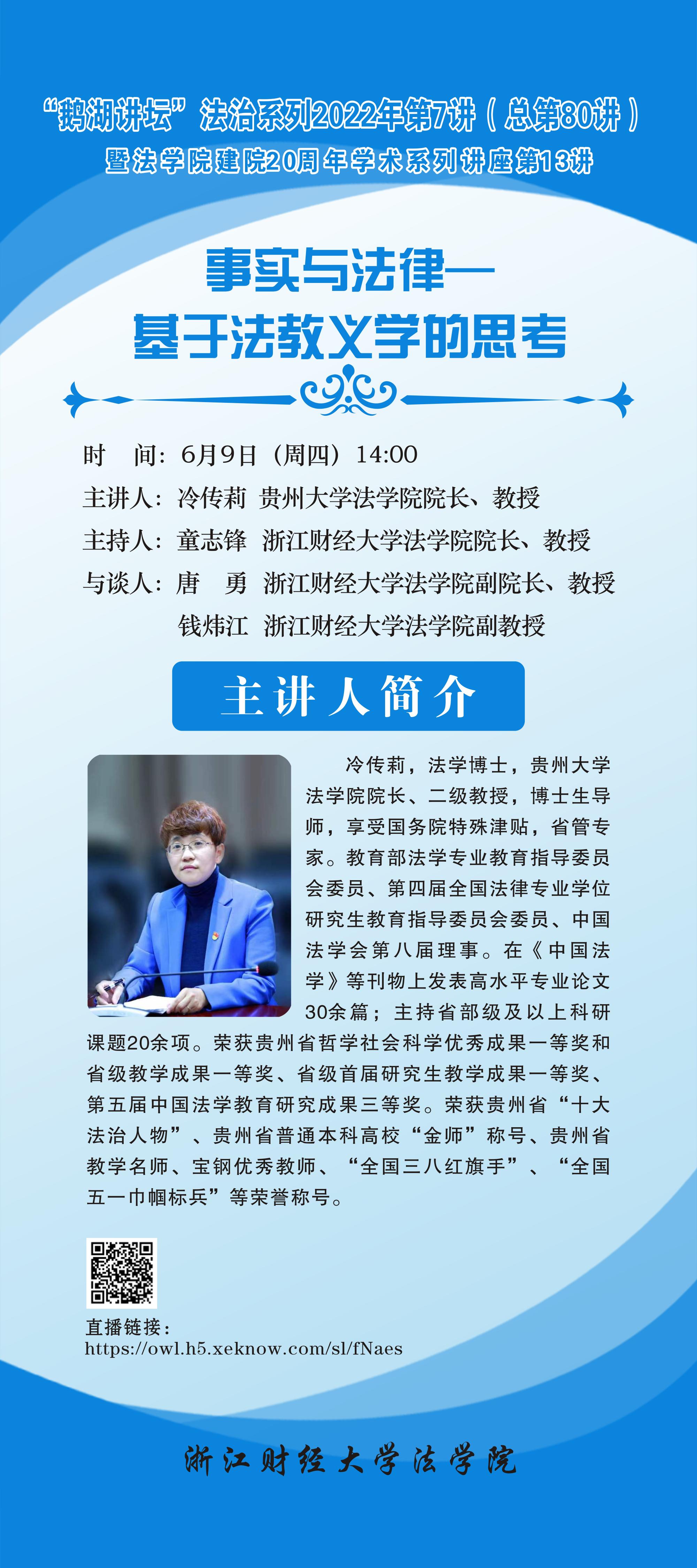 “鹅湖讲坛”法治系列2022年第7讲暨雷速体育官网 建院20周年学术系列讲座第13讲贵州大学雷速体育官网 院长冷传莉教授