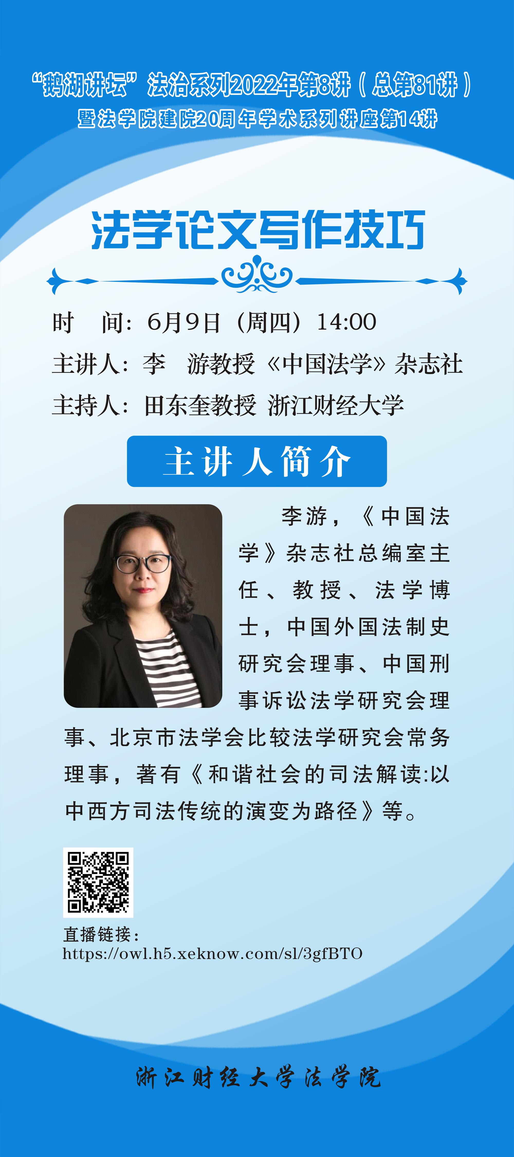 “鹅湖讲坛”法治系列2022年第8讲暨雷速体育官网 建院20周年学术系列讲座第14讲李游教授