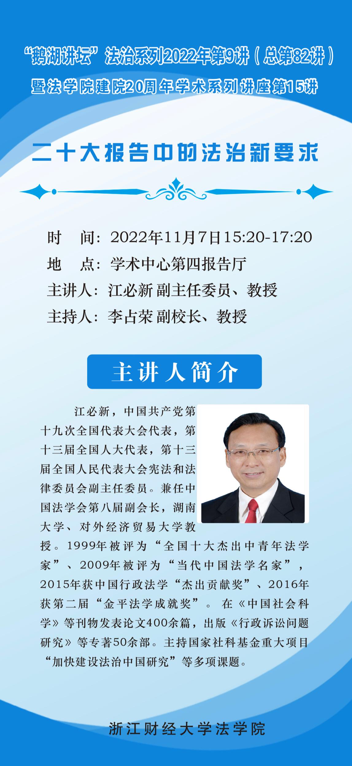 “鹅湖讲坛”2022年法治系列第9讲暨雷速体育官网 建院20周年学术系列讲座第15讲江必新教授