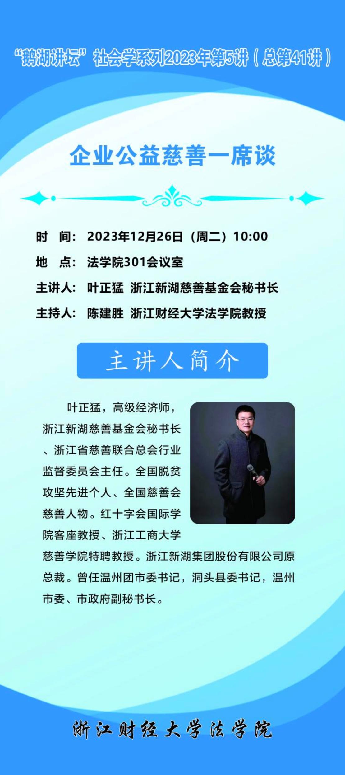 “鹅湖讲坛”社会学系列2023年第5讲(总第41讲)新湖慈善基金会叶正猛秘书长