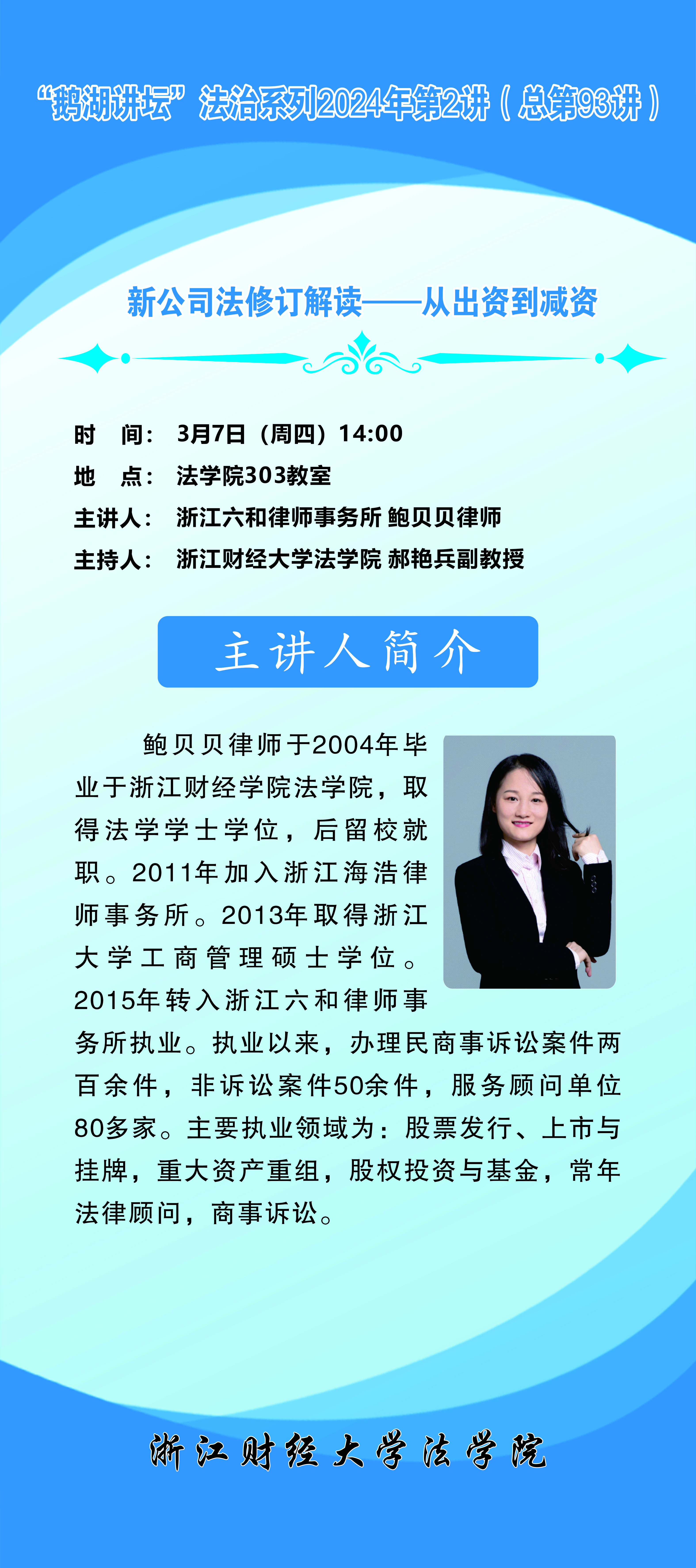 “鹅湖讲坛”法治系列2024年第2讲(总第93讲)浙江六和律师事务所鲍贝贝律师