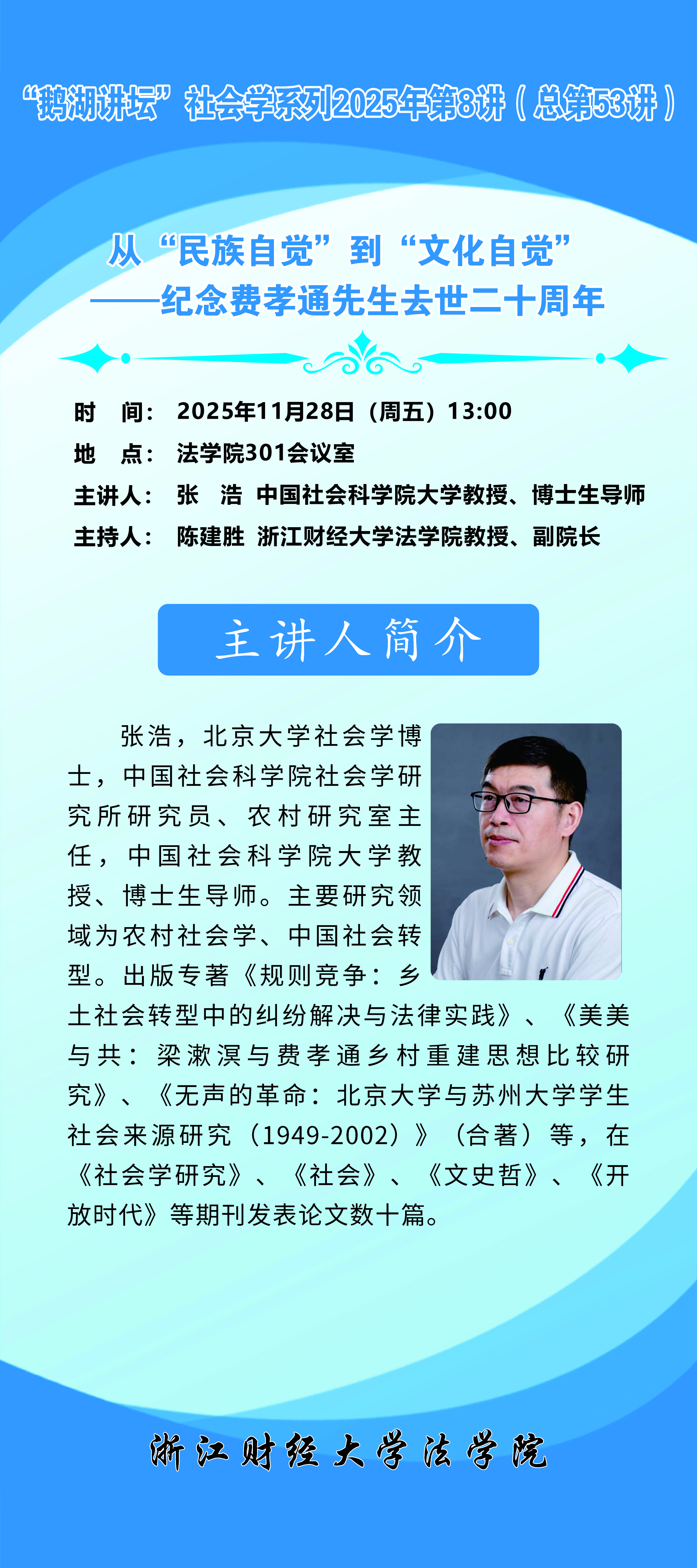 “鹅湖讲坛”社会学系列2025年第8讲(总第53讲)中国社会科学院大学张浩教授
