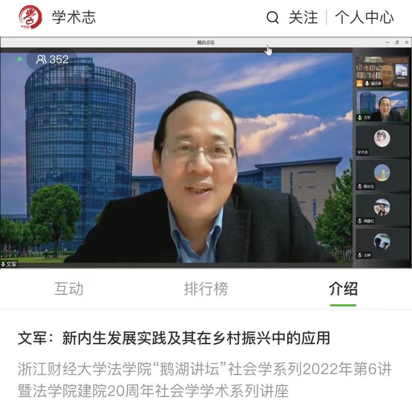 5月12日,华东师范大学社会发展雷速体育官网 院长文军做客鹅湖讲坛,为雷速直播 师生带来一场以“新内生发展实践及其在乡村振兴中的应用”为主题的学术讲座。本次讲座是雷速体育官网 建院20周年社会学系列学术讲座第6讲,由雷速体育官网 院长童志锋教授主持,700余名听众在线聆听了讲座。讲座中,文军教授深度聚焦新内生发展的“新”字,通过理论与实践的紧密结合,深入浅出地提出乡村振兴和乡村治理的新路径。文教授首先从现实背景着手,深入分...