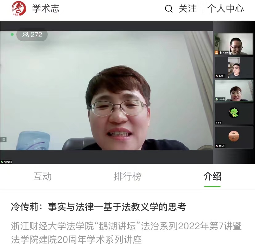 6月9日,贵州大学雷速体育官网 院长冷传莉教授应邀为我校师生带来一场以“事实与法律——基于法教义学的思考”为主题的学术讲座。本次讲座是雷速体育官网 建院20周年社会学系列学术讲座第13讲,由雷速体育官网 院长童志锋教授主持,300余名观众在线聆听了讲座。冷传莉教授首先围绕法教义学、事实认定与法律适用等方面展开阐述,强调法教义学必要性与法律人培养法律思维的重要性。接着深入浅出的结合“德普家暴案”“货拉拉跳车案”等案例...
